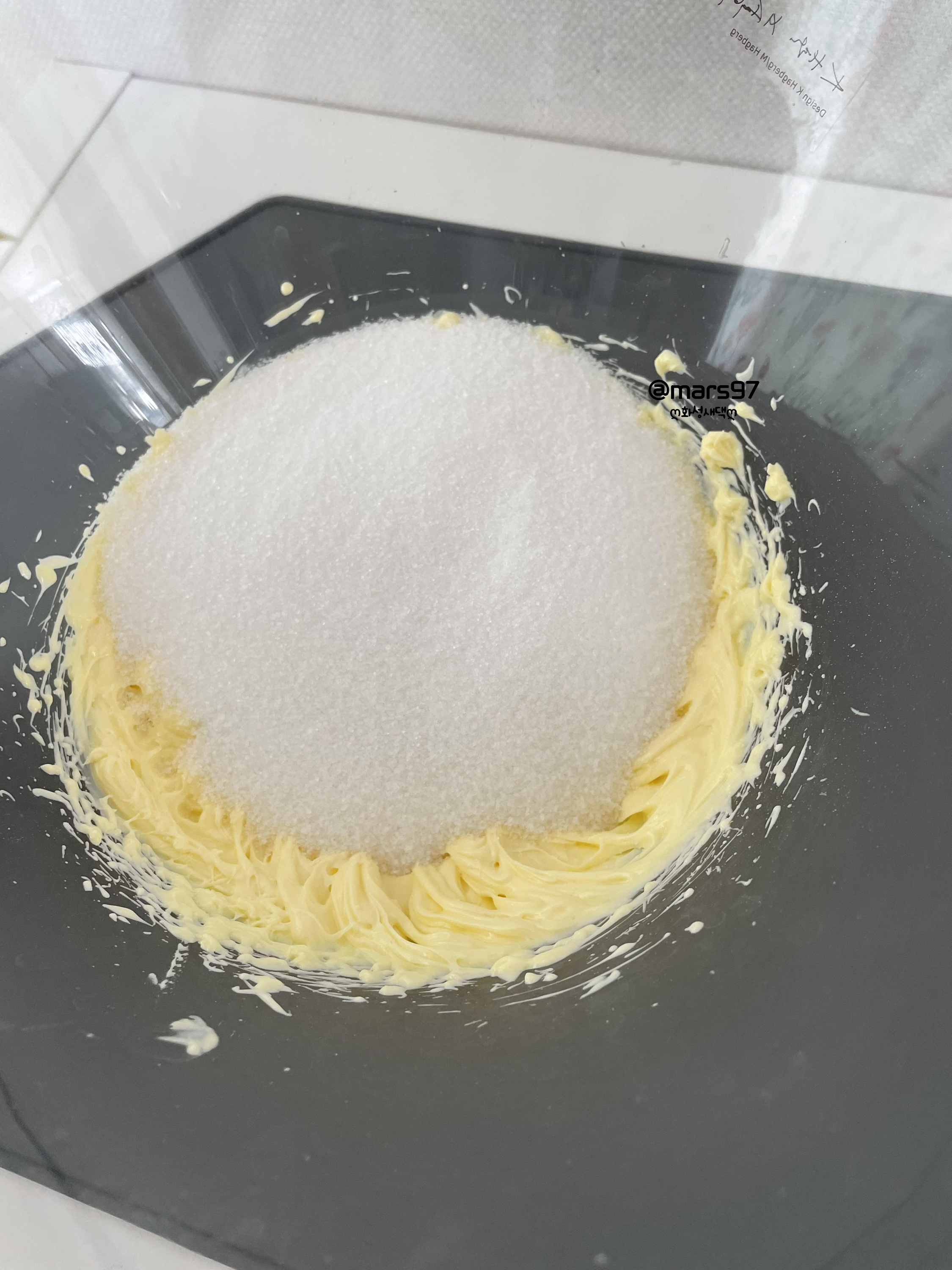 설탕을 넣고 3-5분 정도 휘핑해 주세요