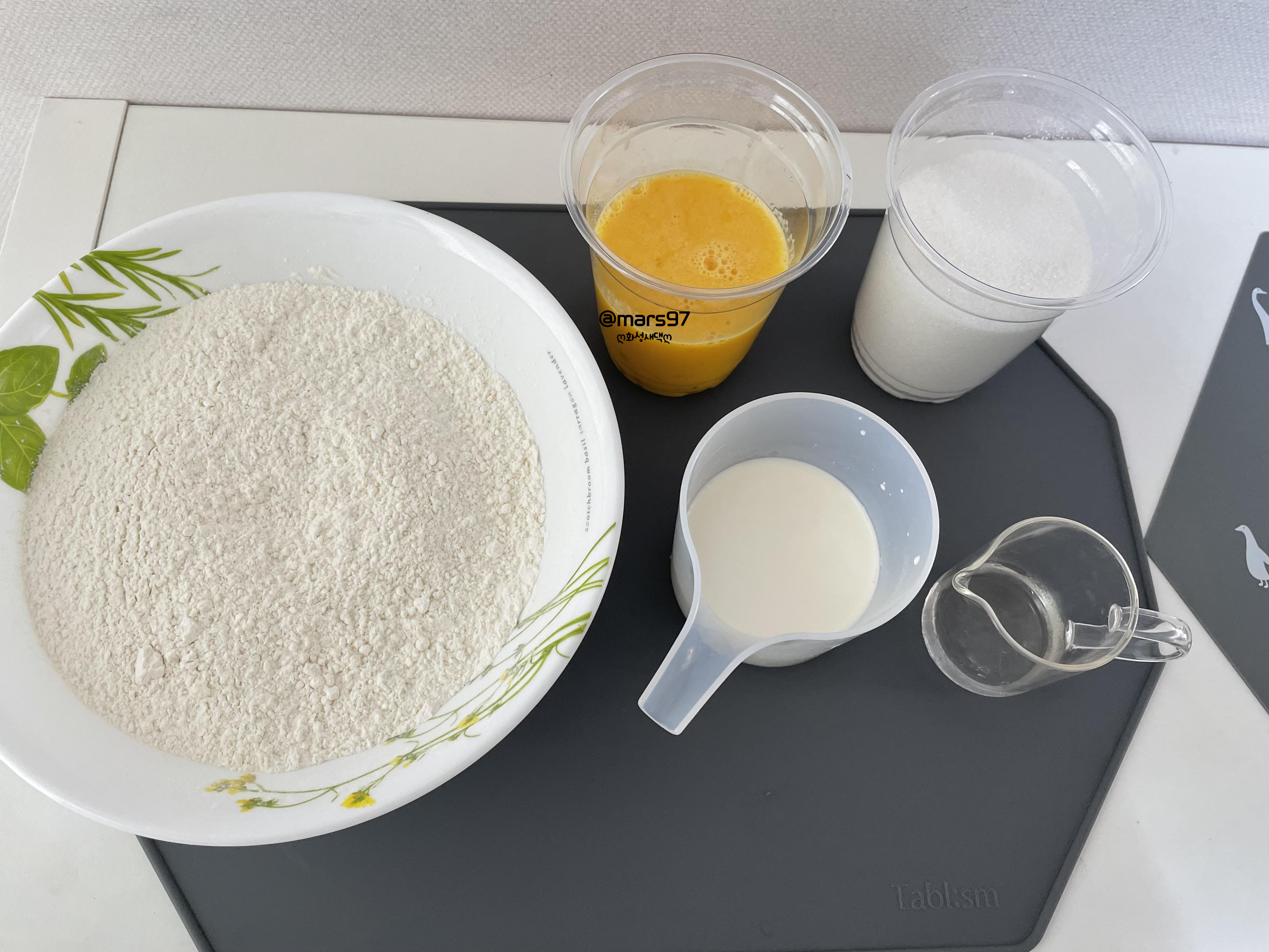 가루류는 한 번에 계량해서 가볍게 섞어 두었어요