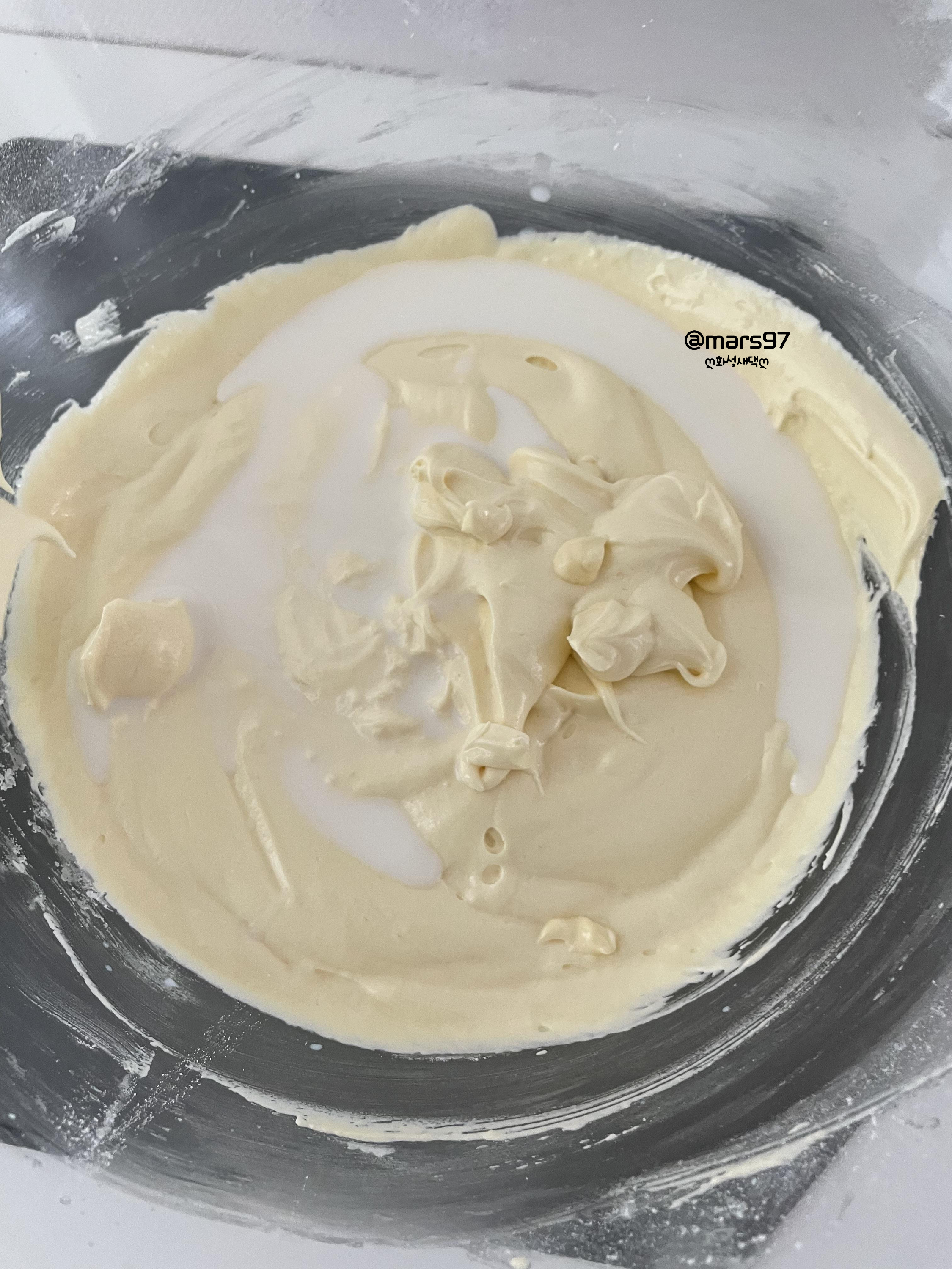 중간중간 실리콘 주걱으로 정리해 가며 휘핑해주세요