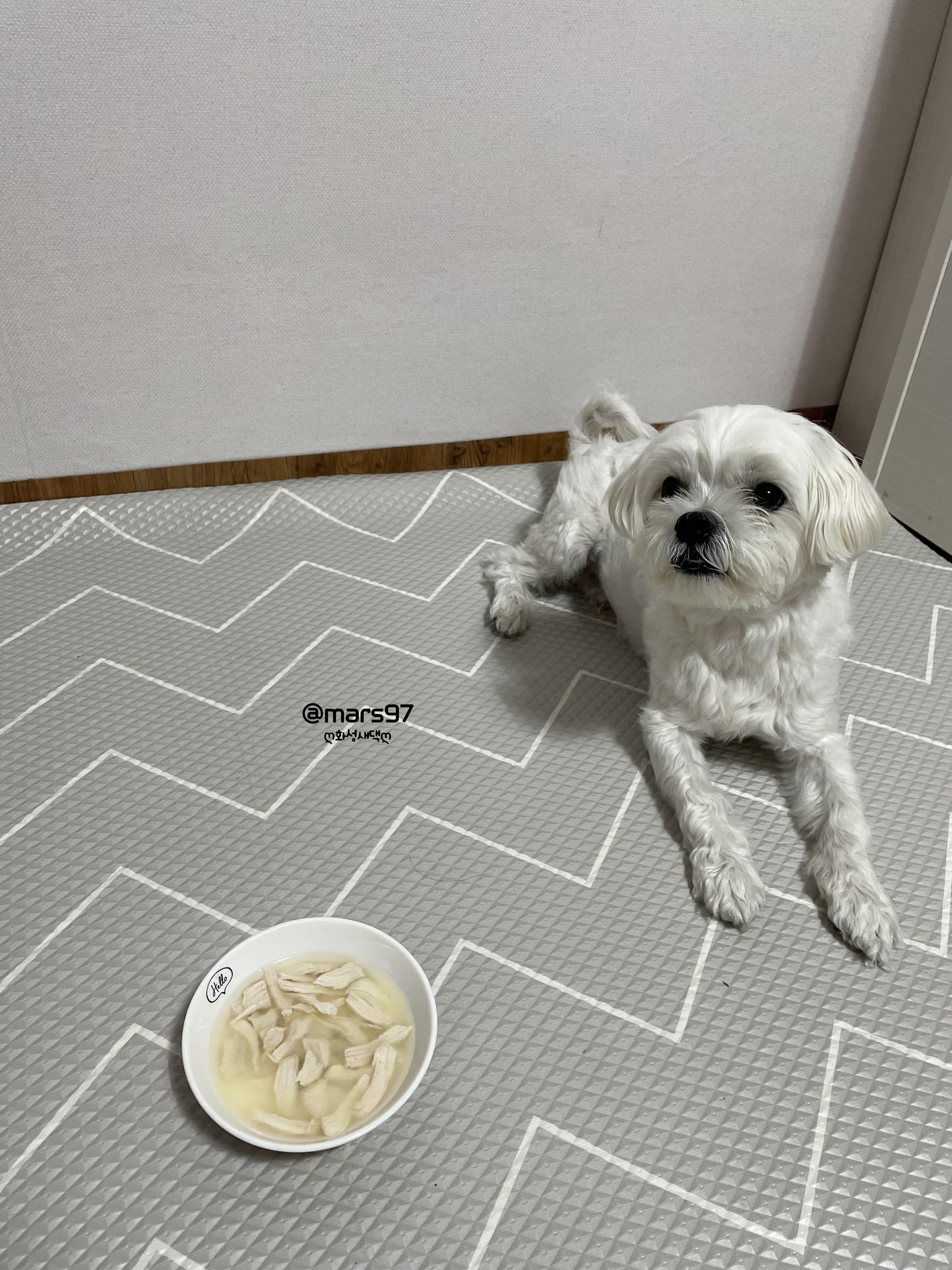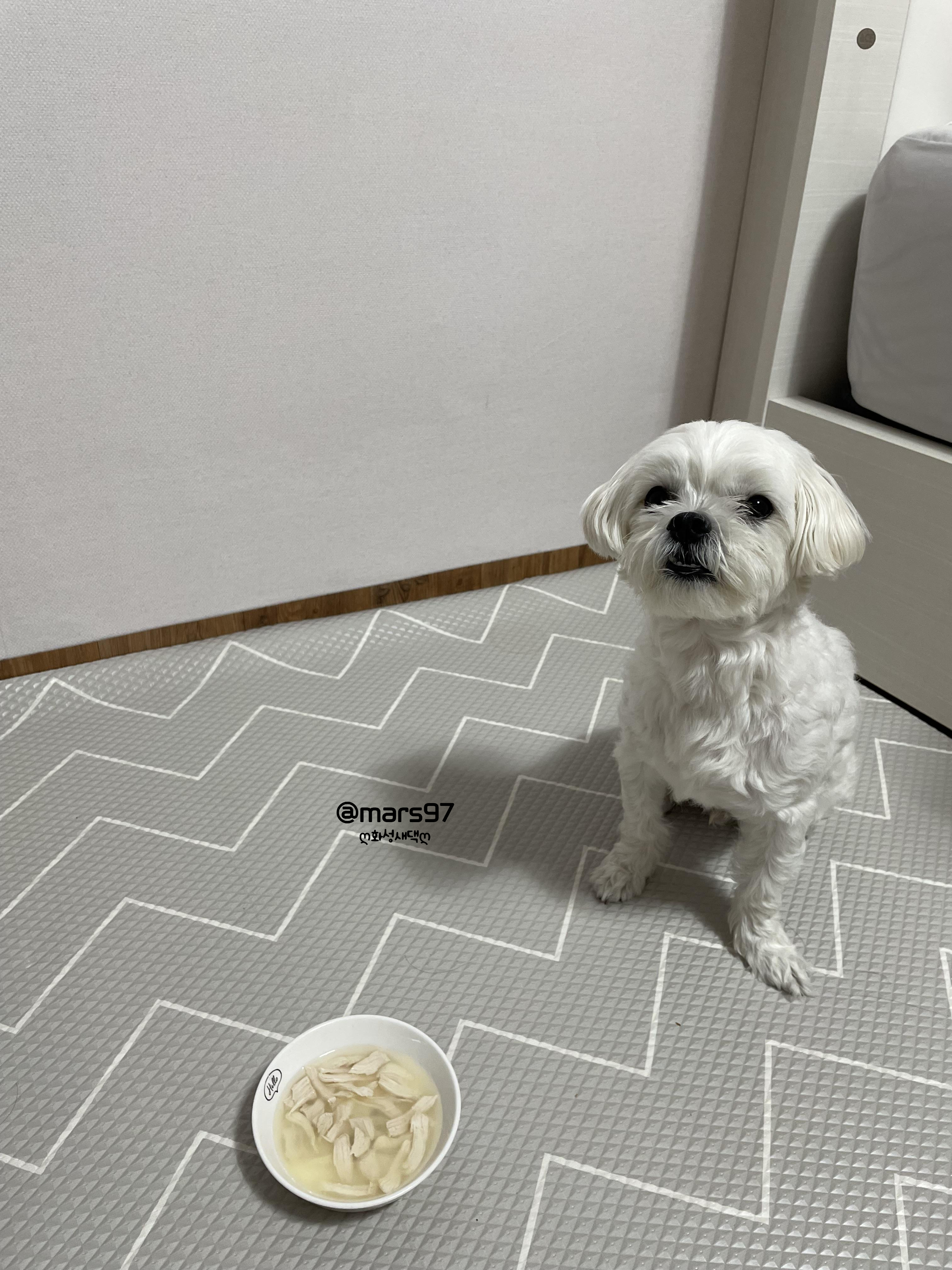 겨울이가 냄새 맞고 옆에 와서 얼른 달라고 앉아서 기다리더라고요