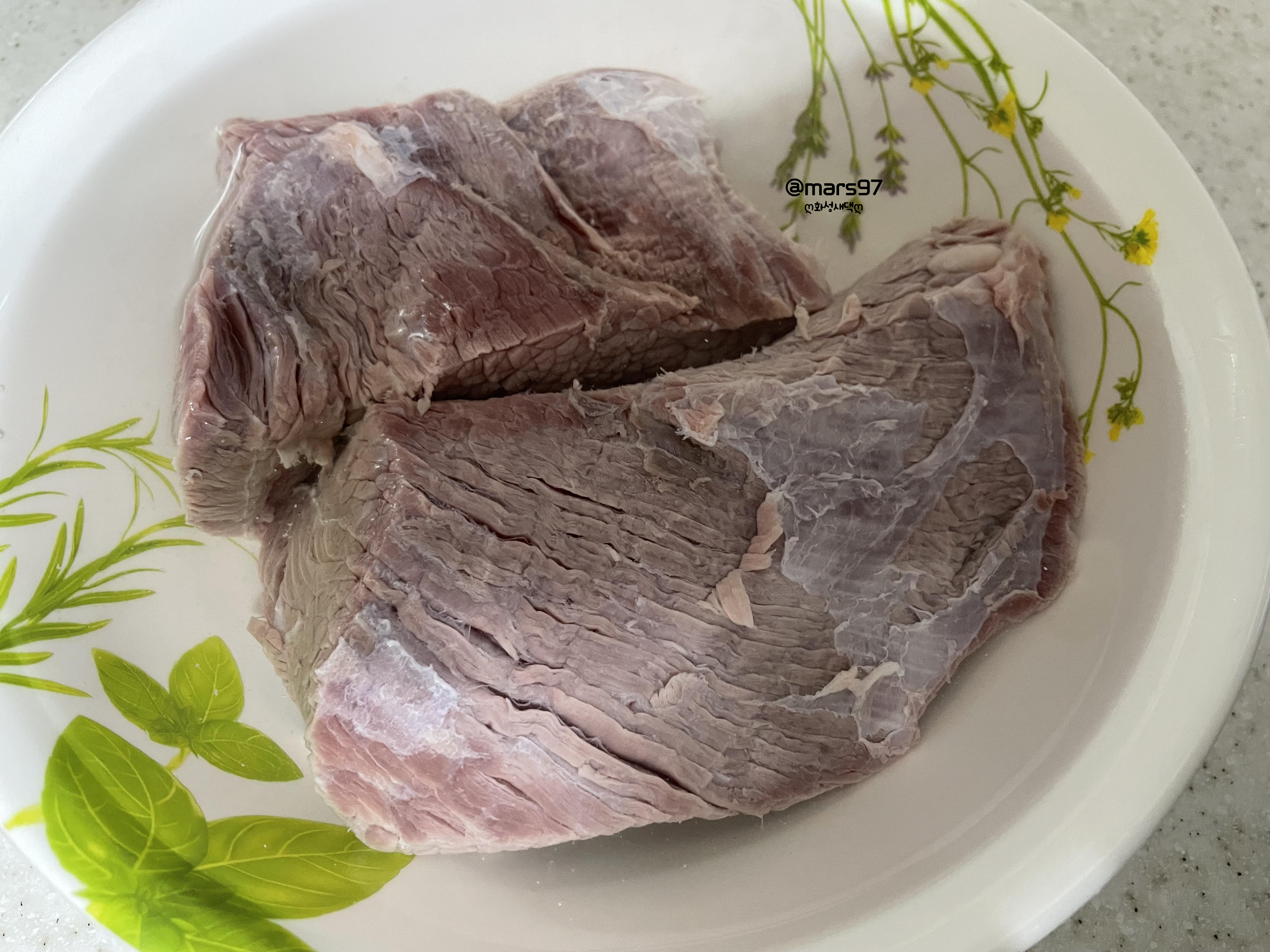집 근처 정육점에서 홍두깨살 600g 구매했어요