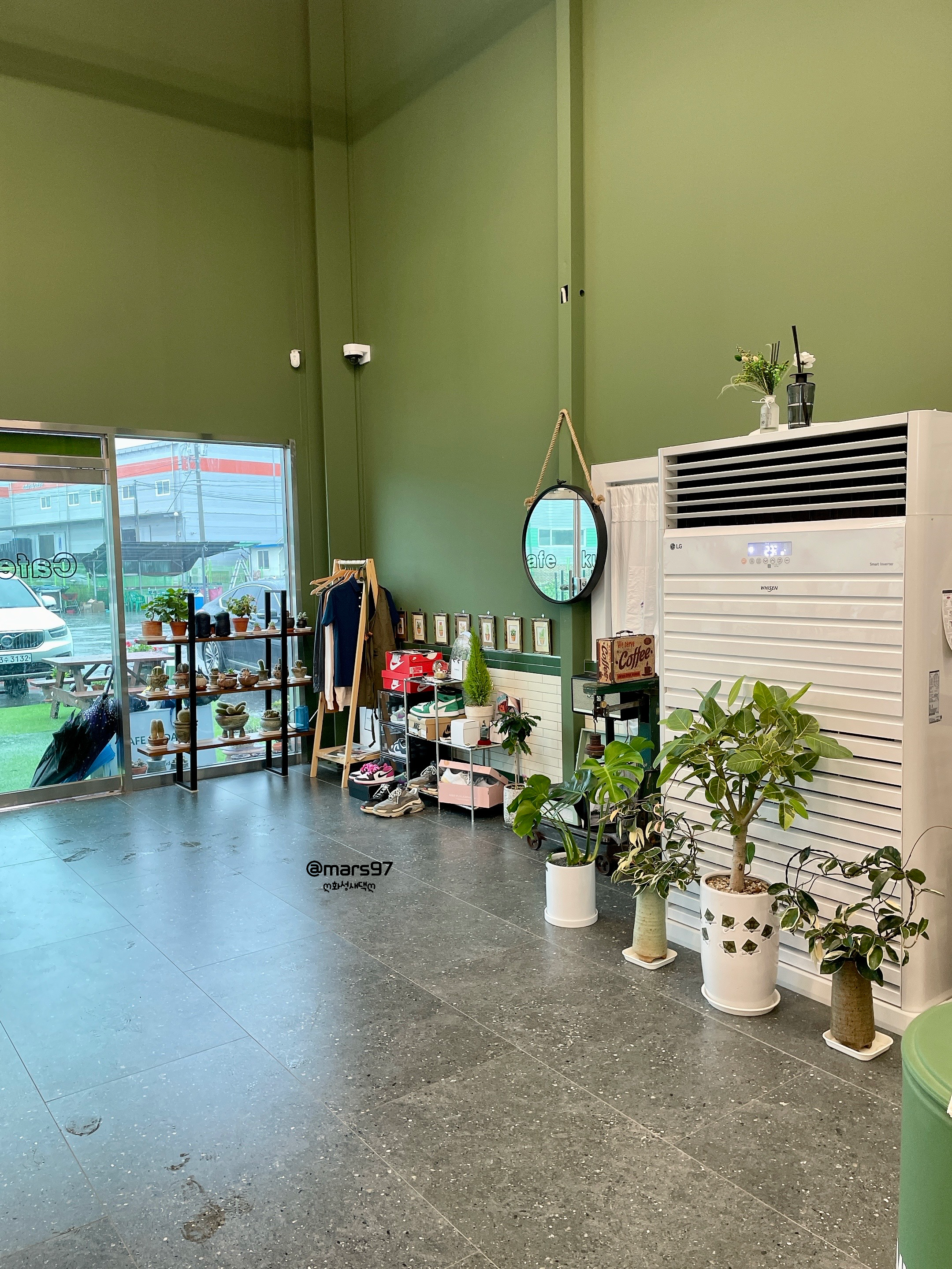 그린&우드 조합으로 굉장한 감성카페 느낌이에요