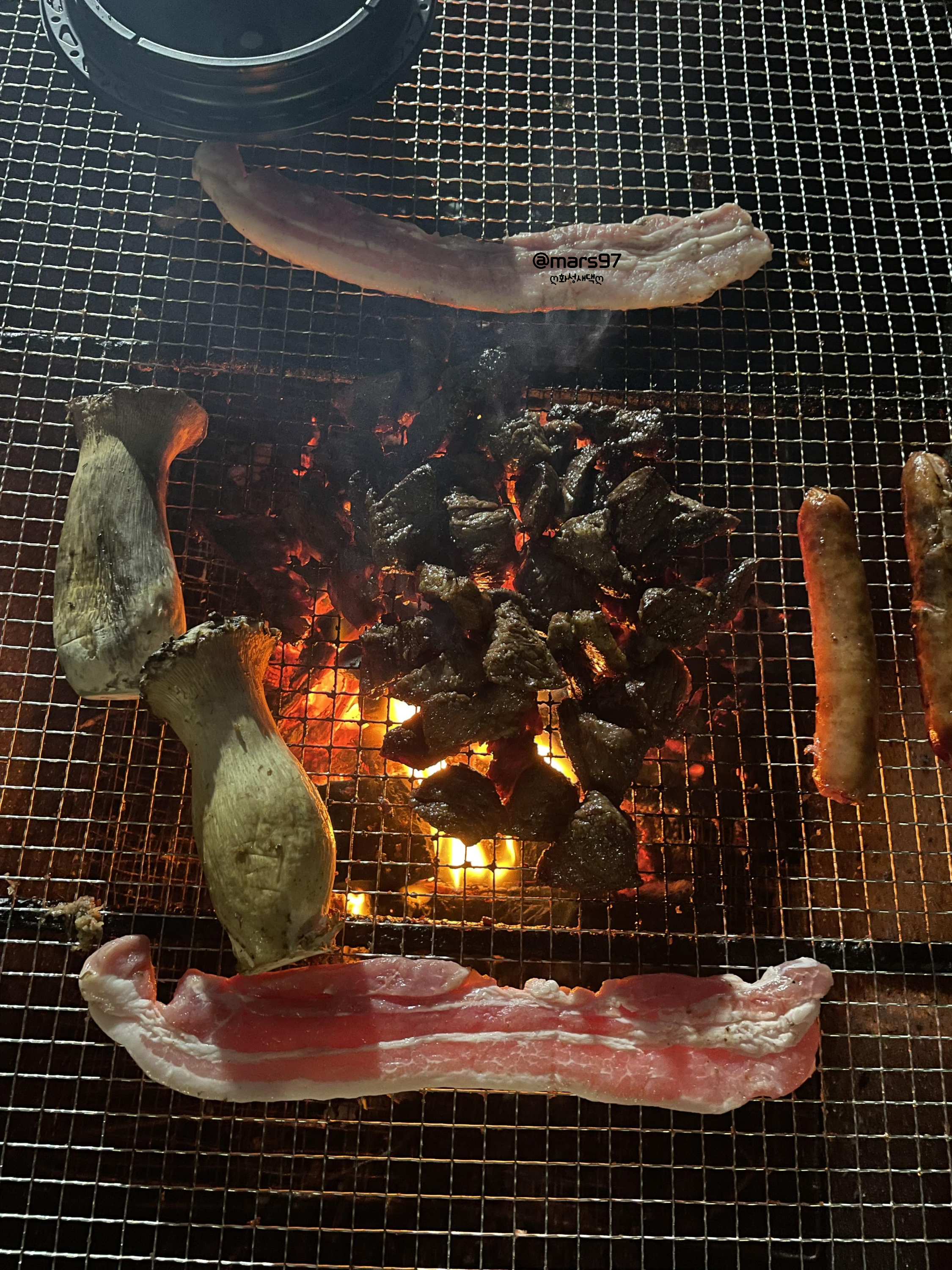 등갈비와 프렌치랙을 먹으려면 한 명이 불 앞에서 계속 고기를 구워야 하니,,,