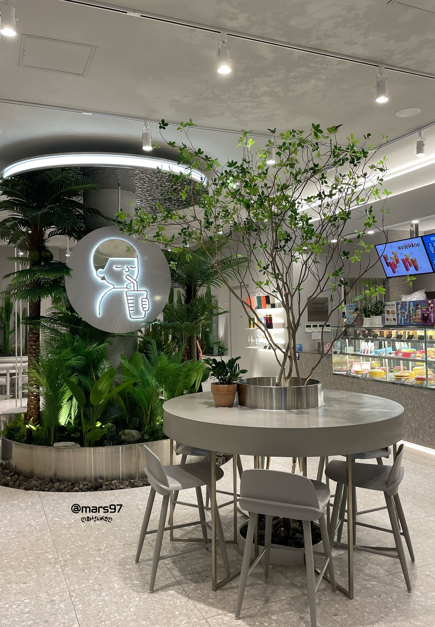 화이트와 초록 초록한 식물의 인테리어가 예쁘더라고요