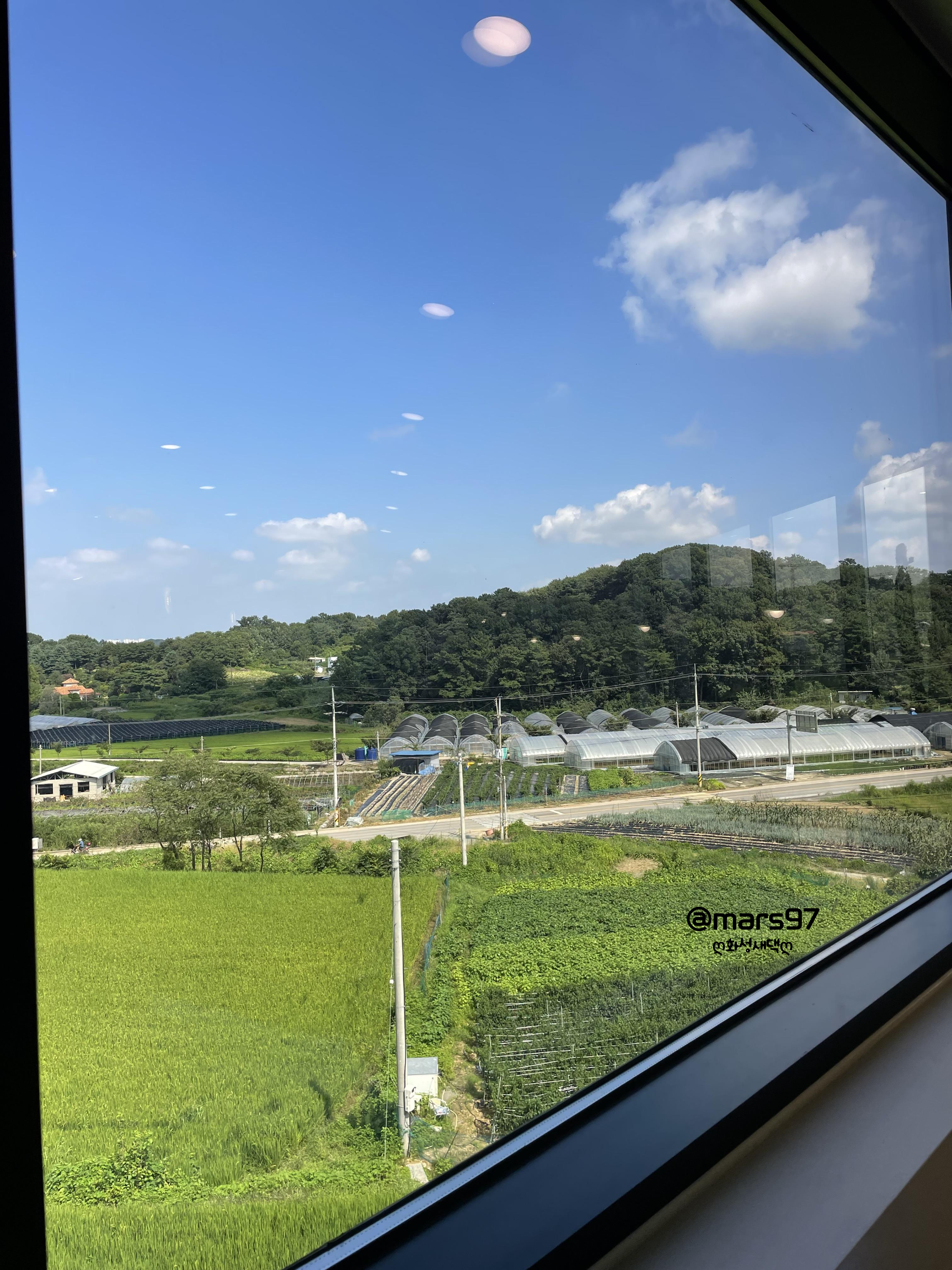 운 좋게 창가 자리가 비어 창가 자리에 앉았어요
