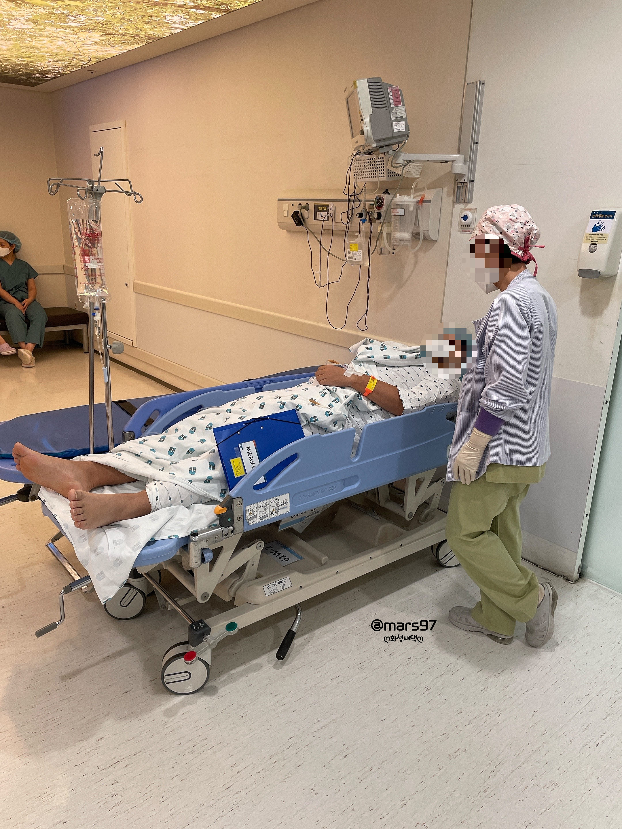 침대에 실린 채 남편님이 나왔어요