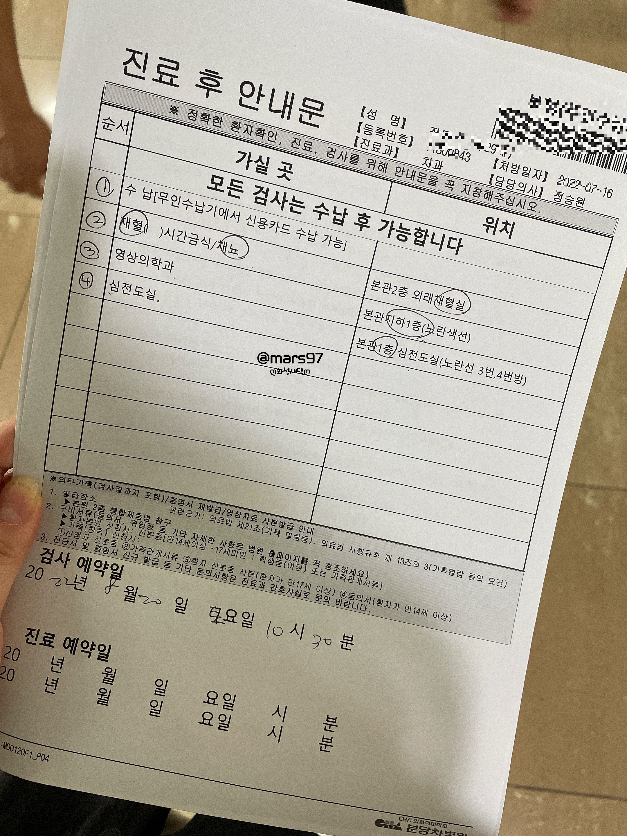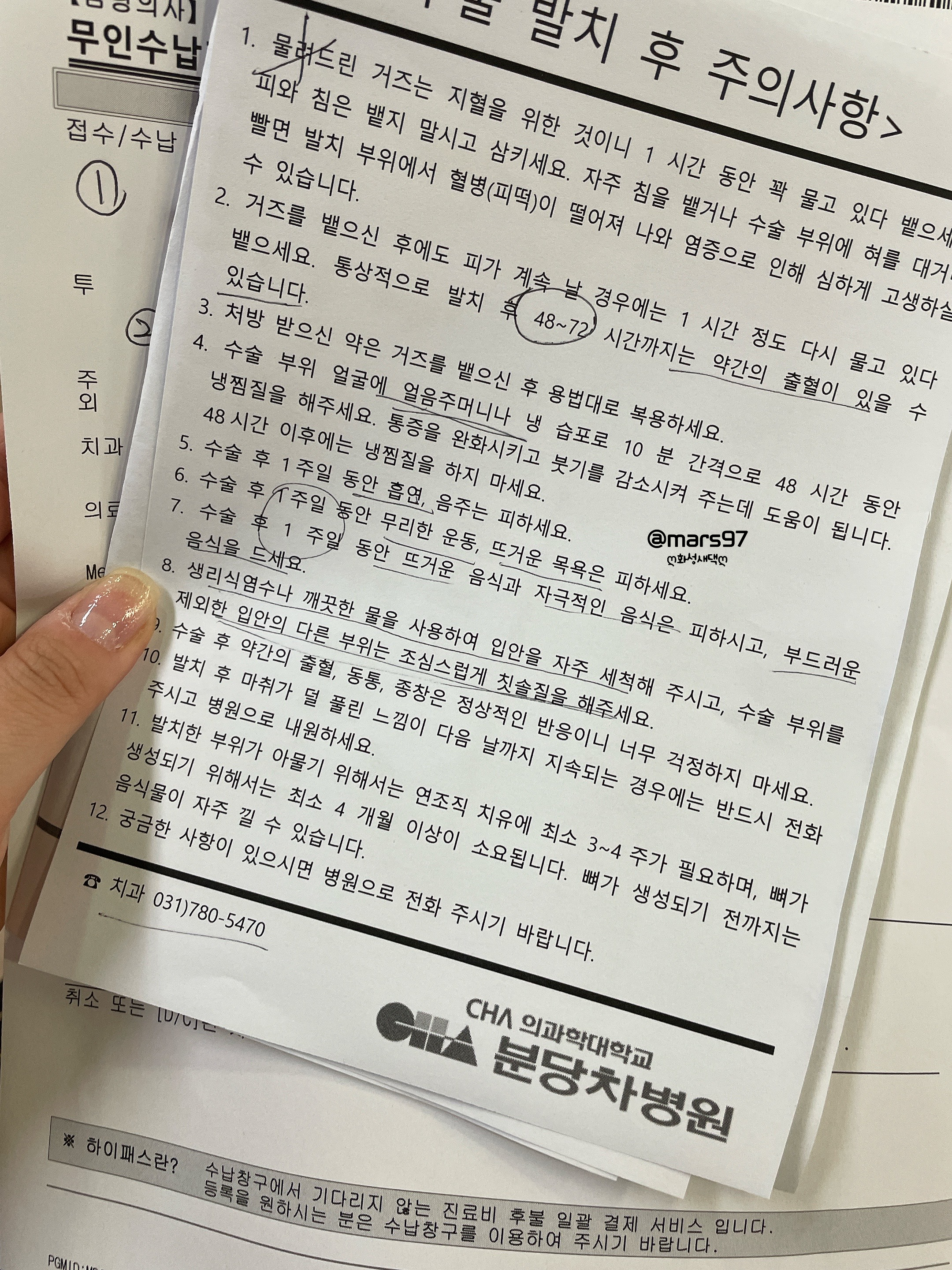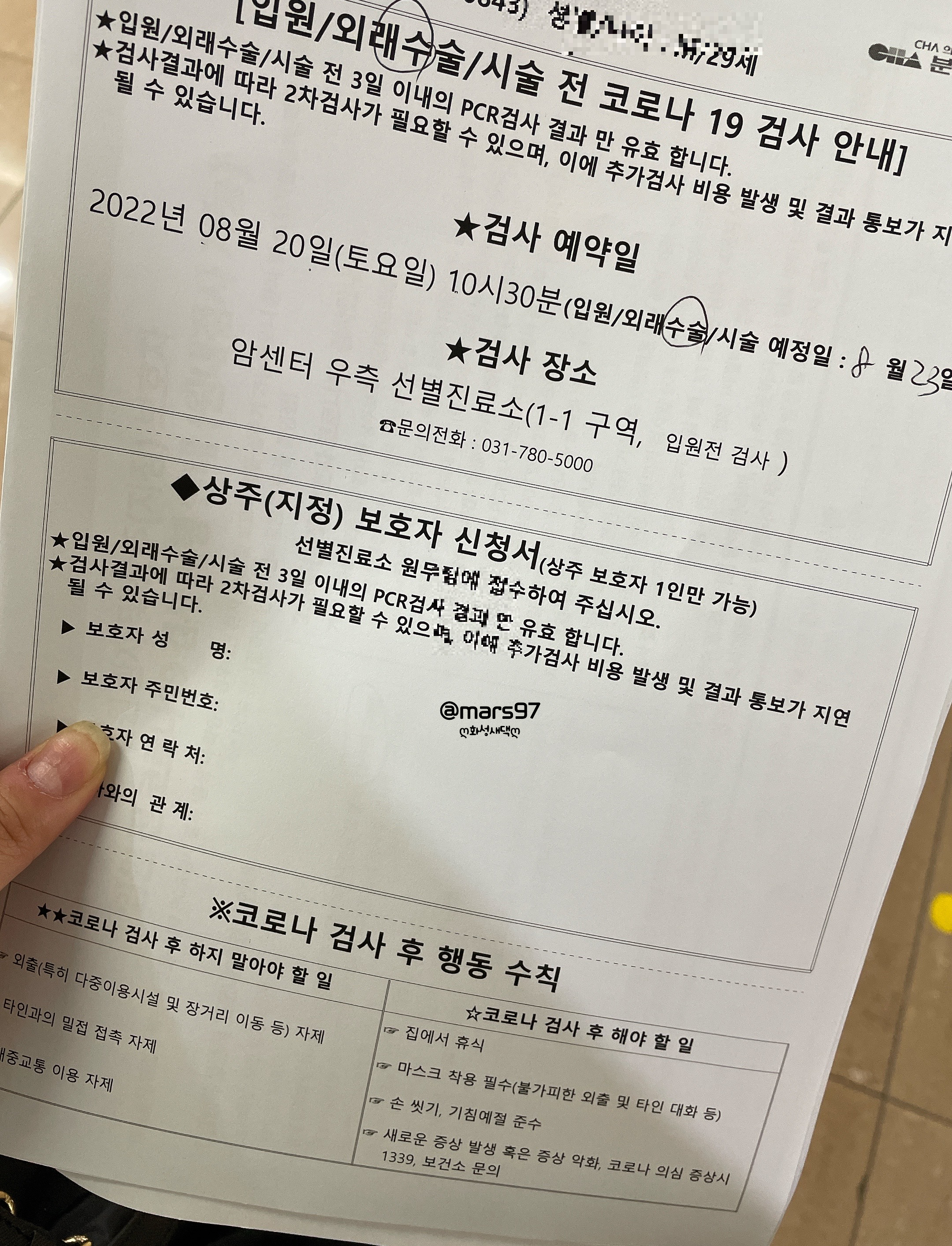 그리고 수술 3일 전 분당 차병원에서 실시한 코로나 음성 결과가 있어야 합니다
