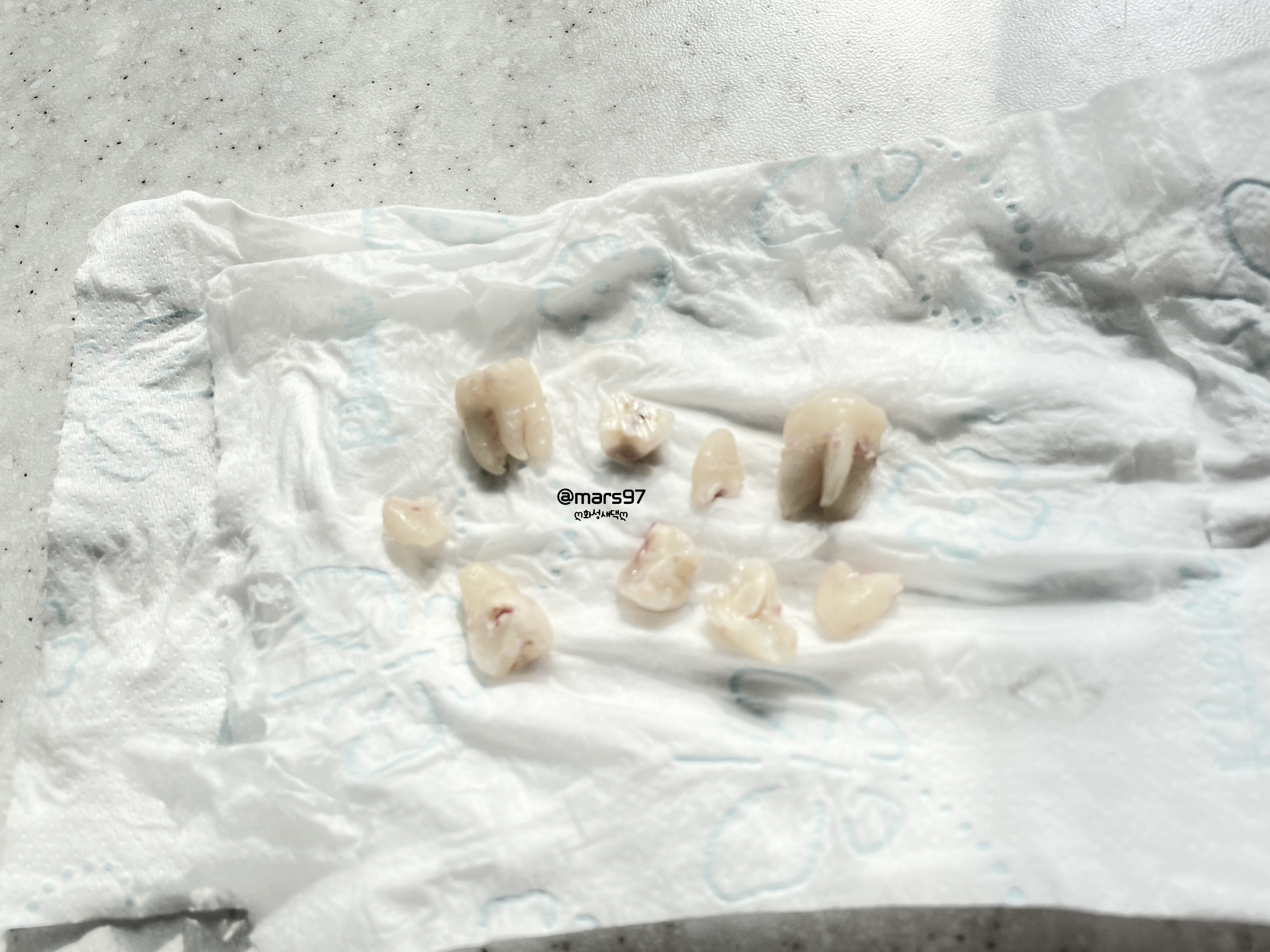 주치의가 뿌리가 단단해서 조각 내서 발치했다고 하더라고요