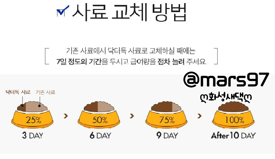 닥터독 홈페이지에서 가져온 사료 교체 방법이에요