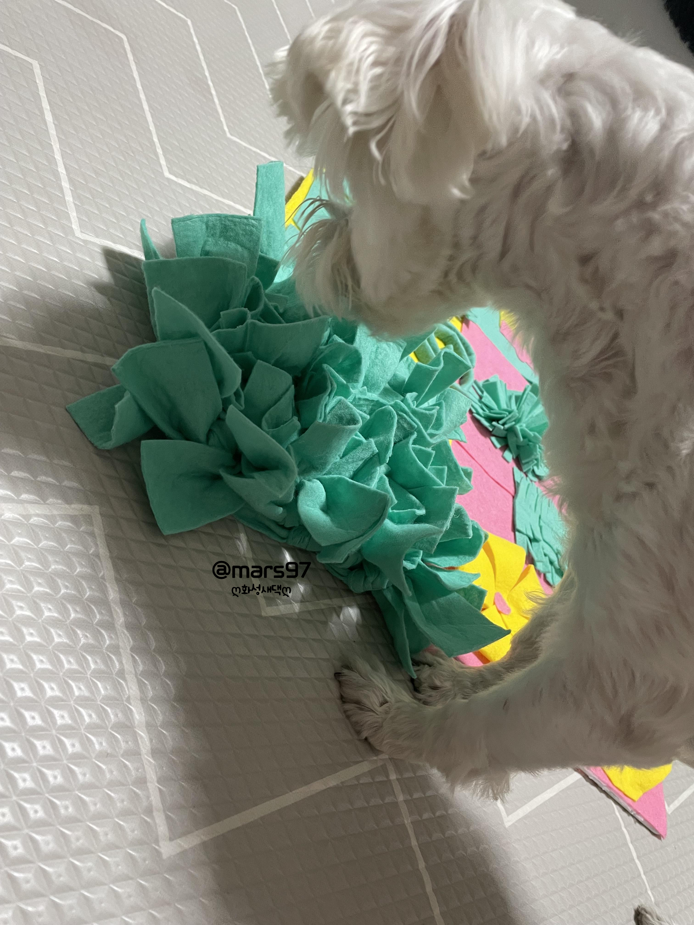 집에 있던 독일산 행주?를 이용해서 겨울이 노즈 워크 장난감 만들어 주었어요