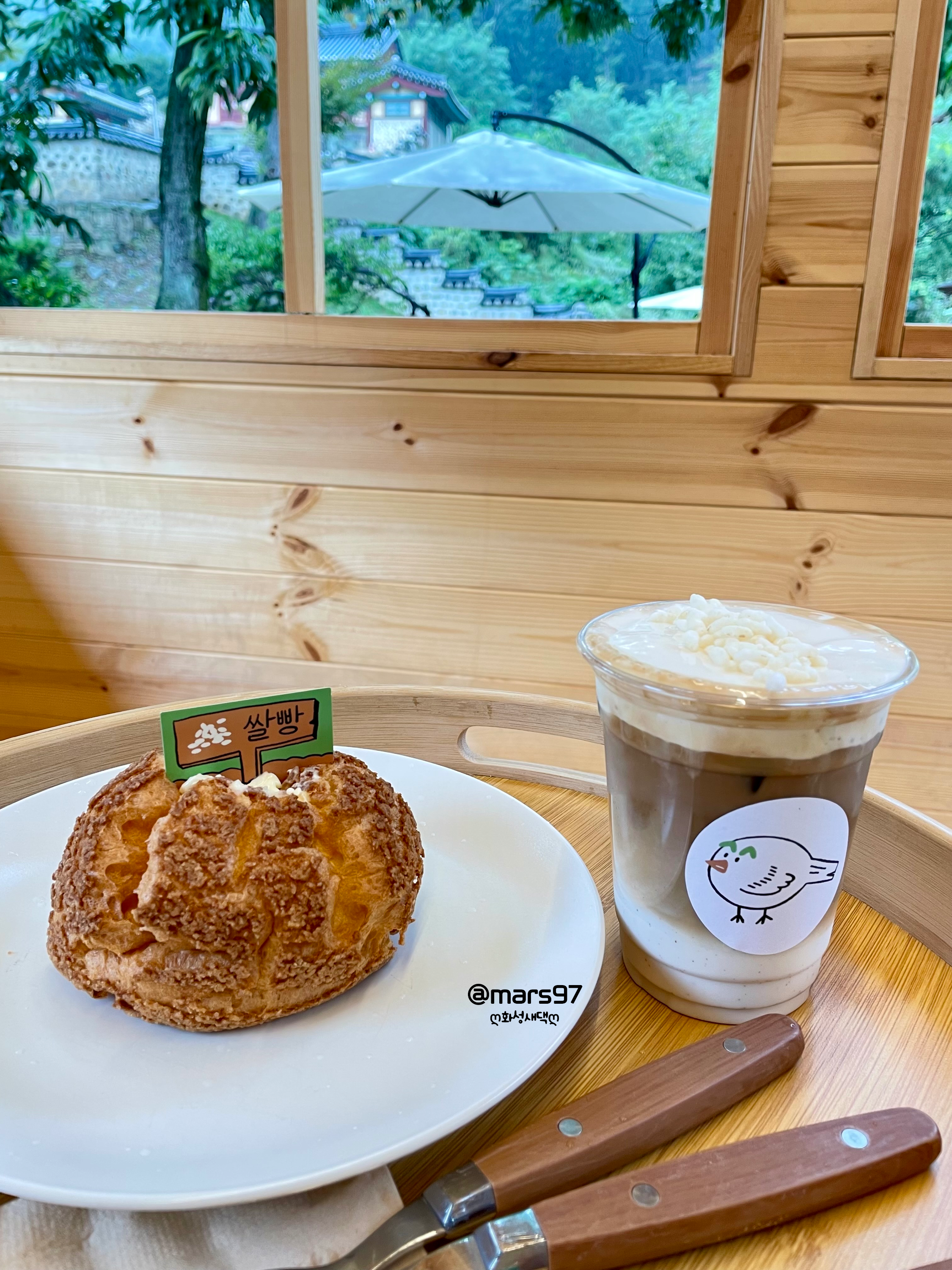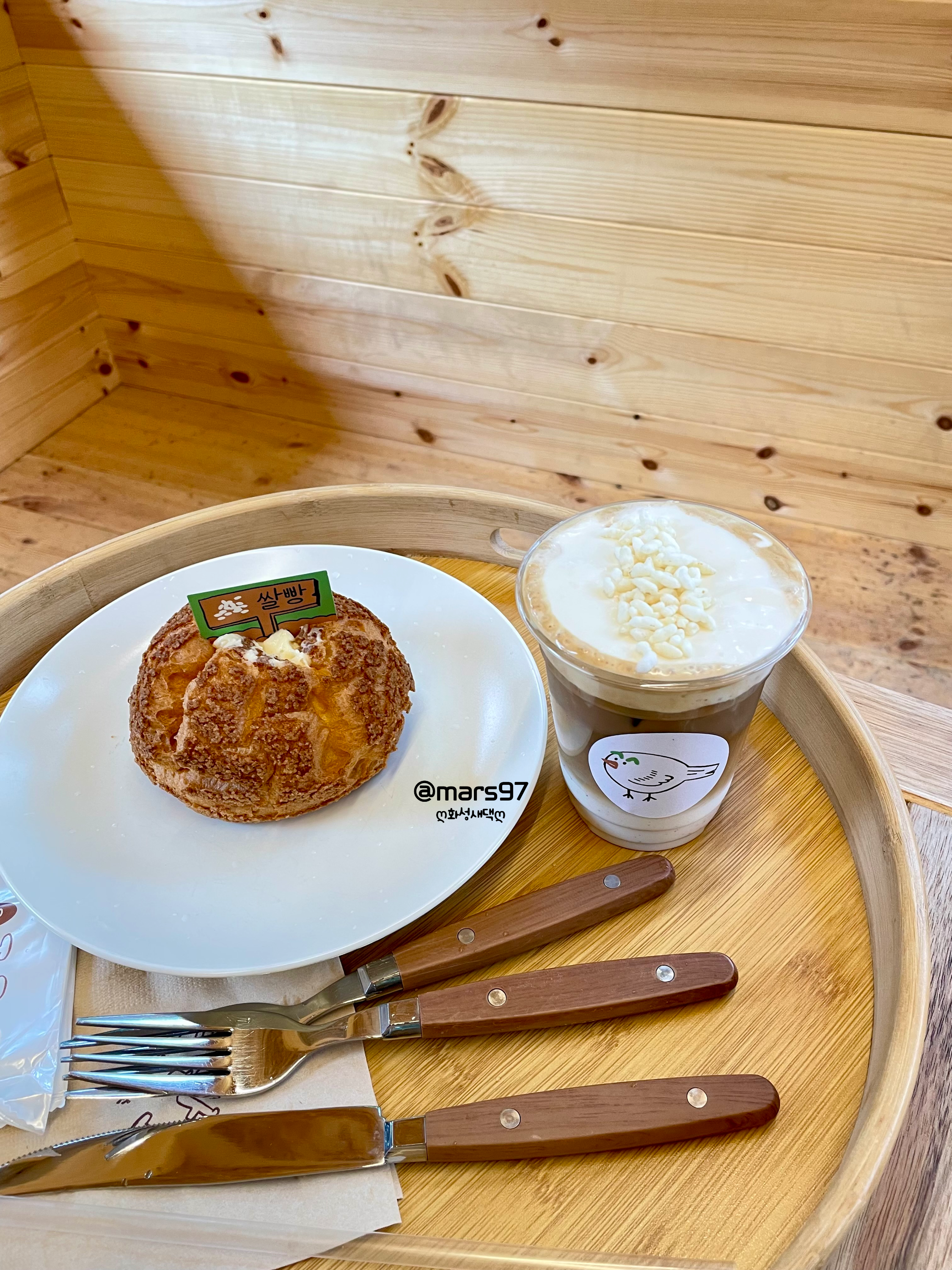쌀 크림 라떼와 흰쌀 크림빵 주문했어요