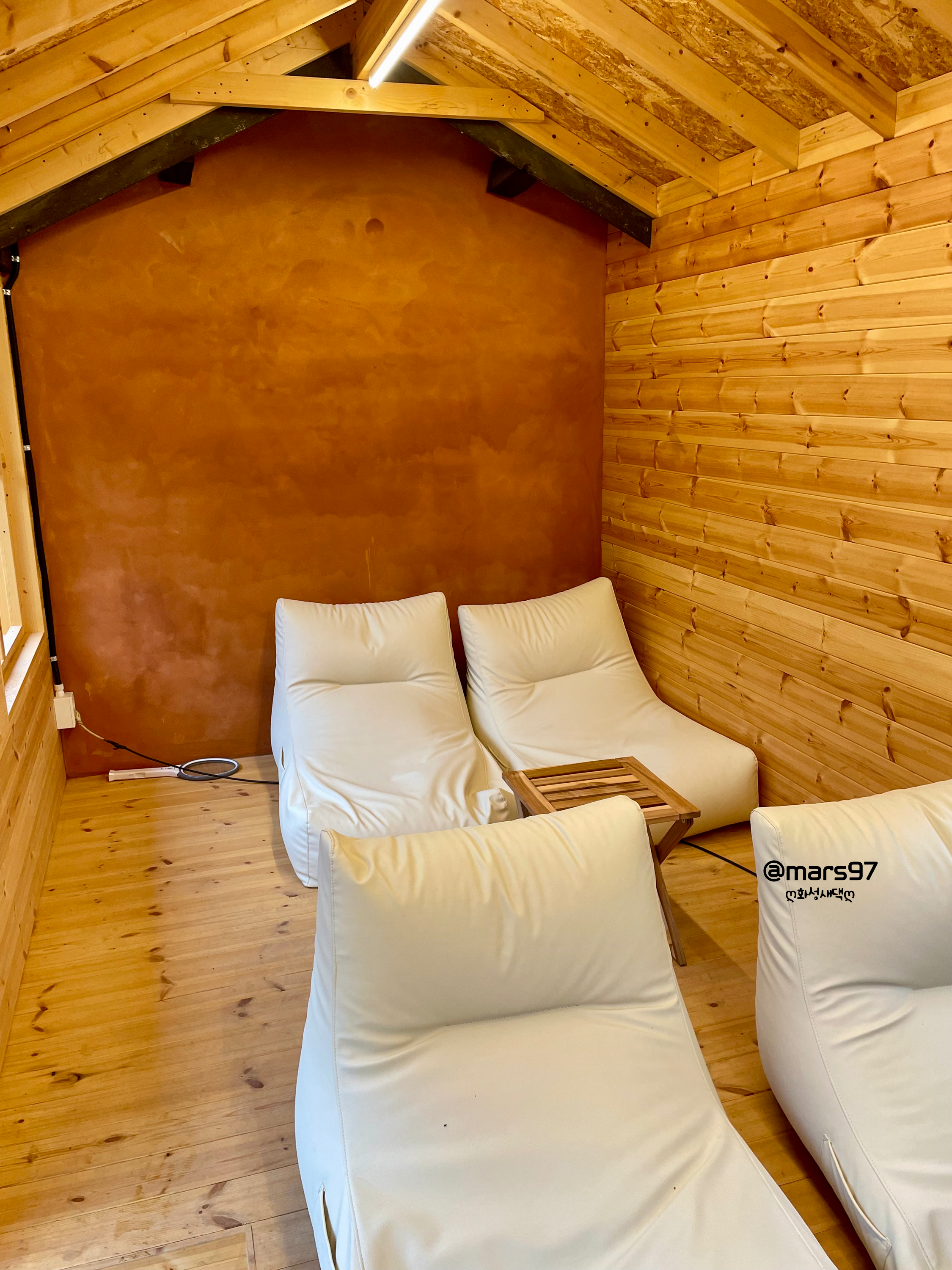 작은 테이블과 빈백 쇼파가 놓여 있어요