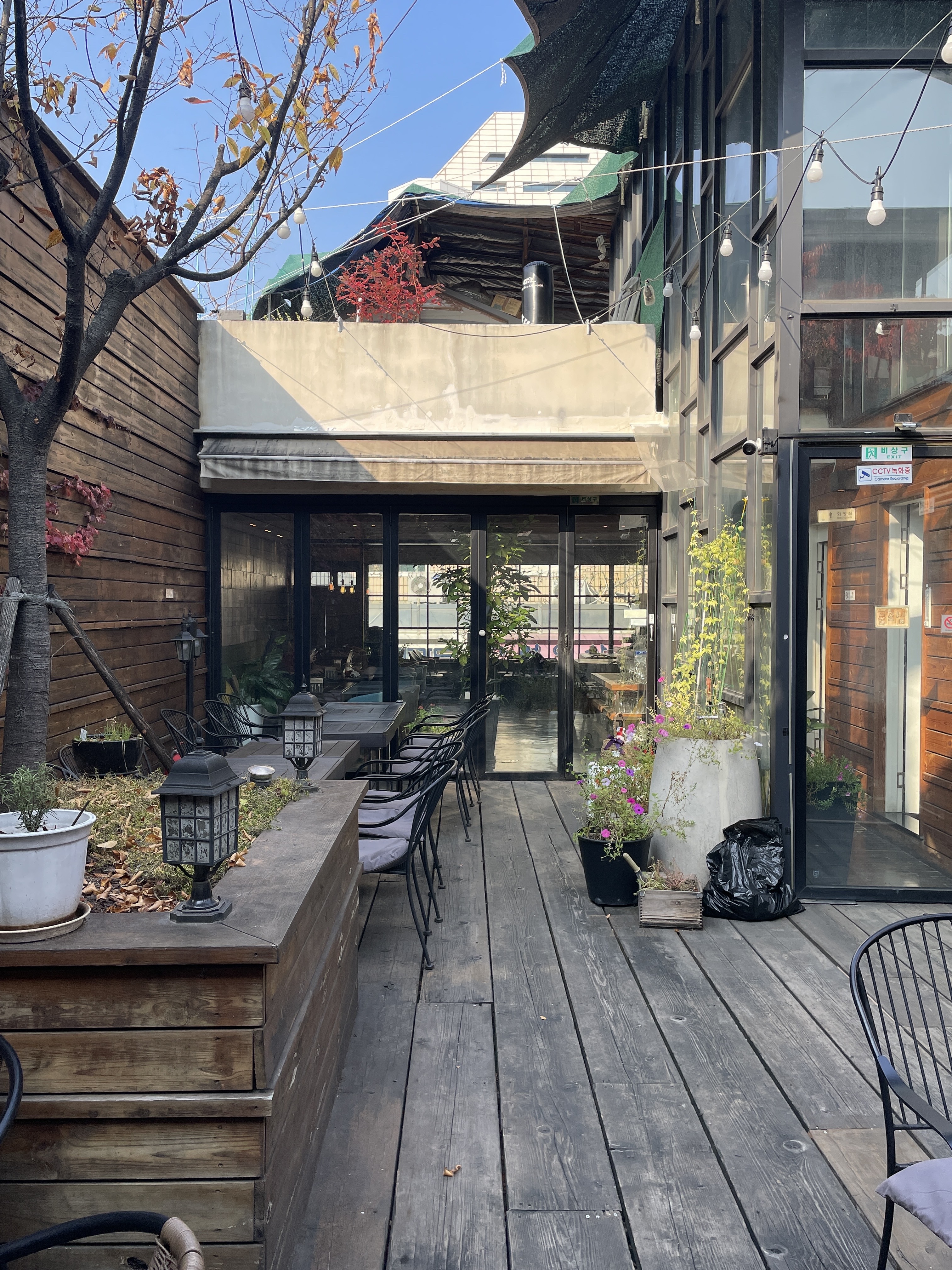 창가쪽으로 자리가 있었지만 야외로 나가기로 했어요