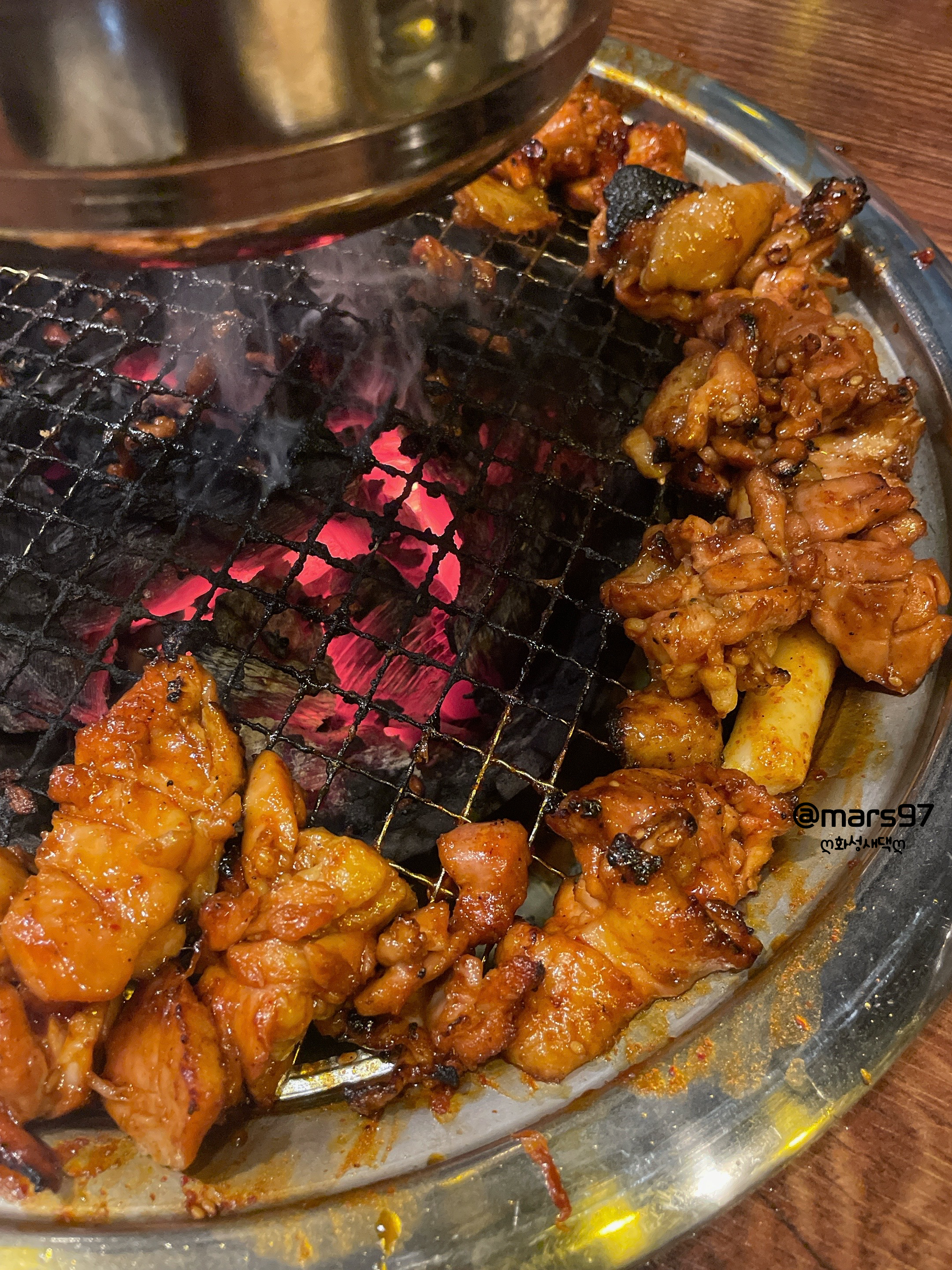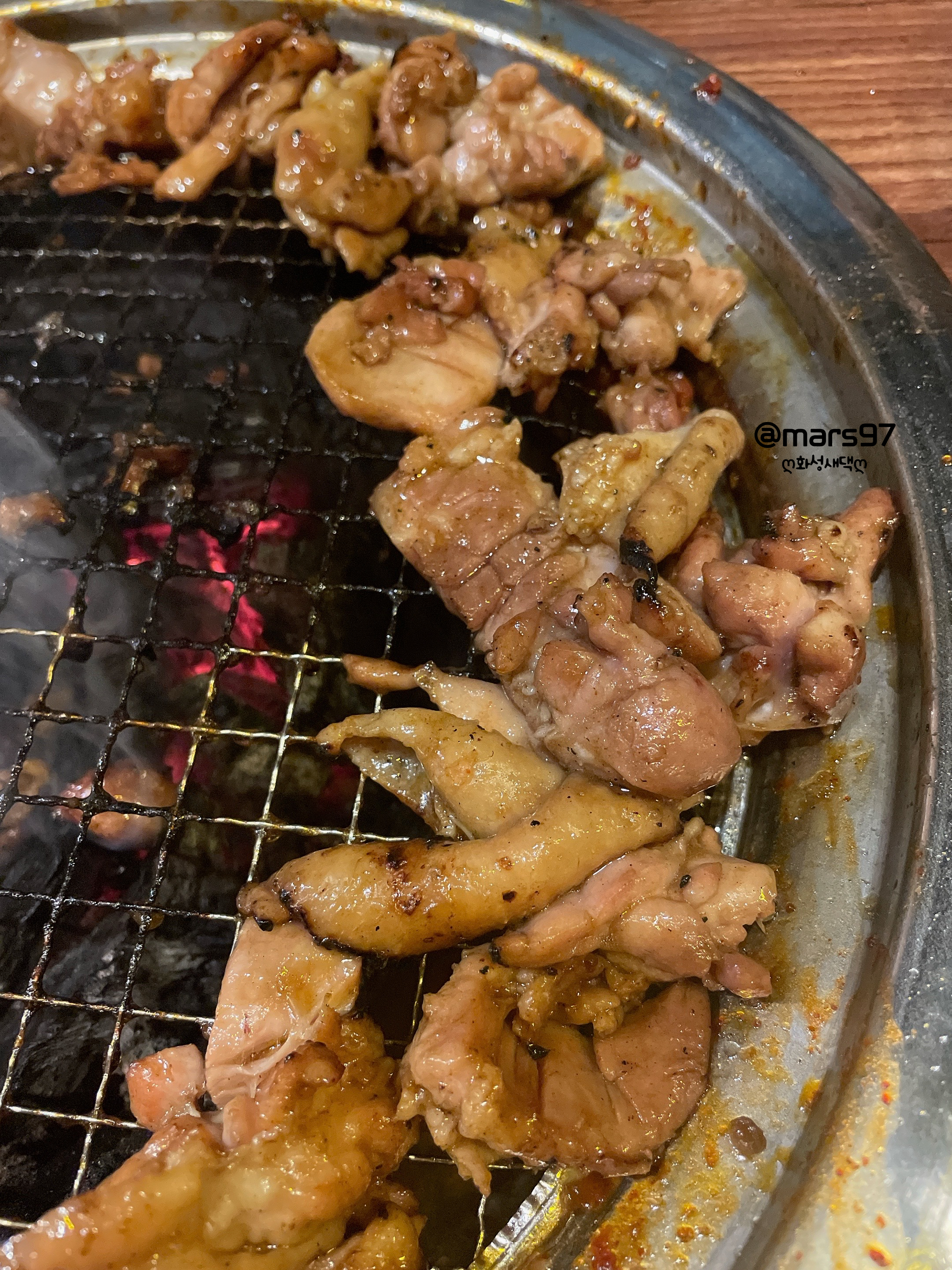 숯불에다 양념이 되어 있어서 자주 안 뒤집으면 금방 타더라고요