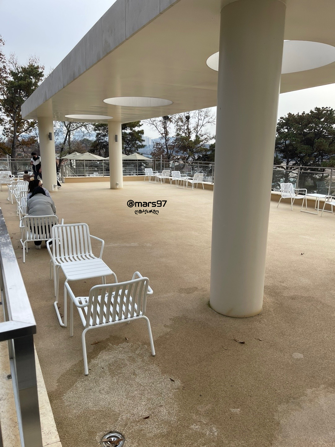 내려가는 계단 옆으로도 테이블과 의자가 놓여 있어요