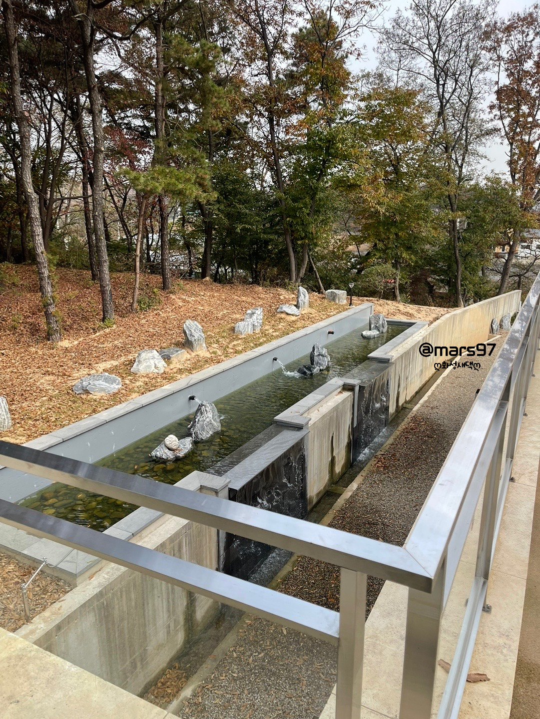 밖으로 나가면 아까 1층에서 보였던 분수가 2층에서도 보여요