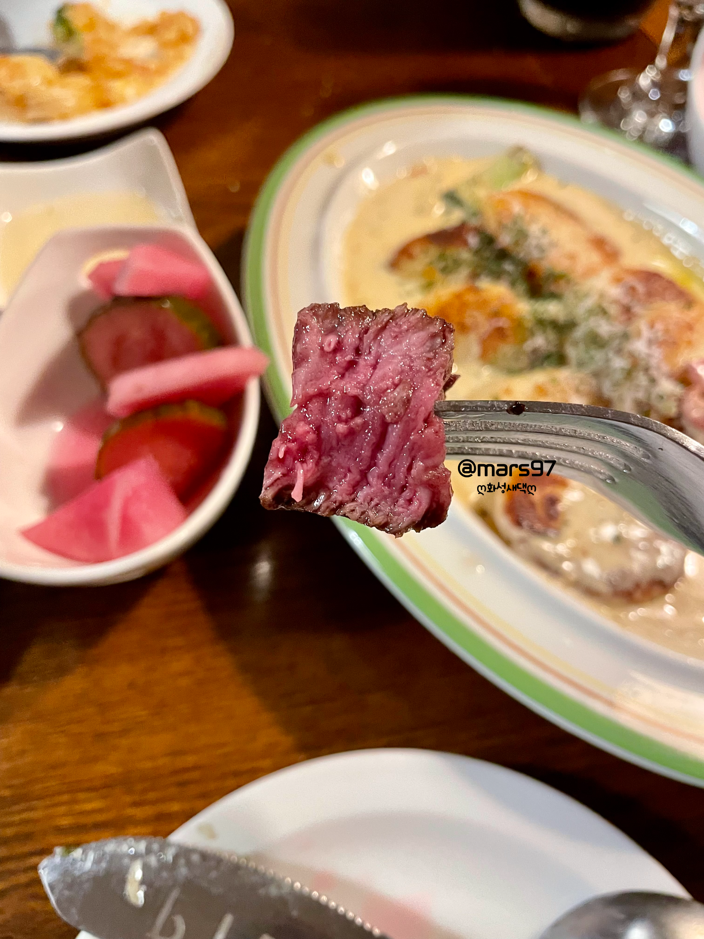 음식이 맛있으며 스테이크가 있어야 한다는 것이 조건이었어요