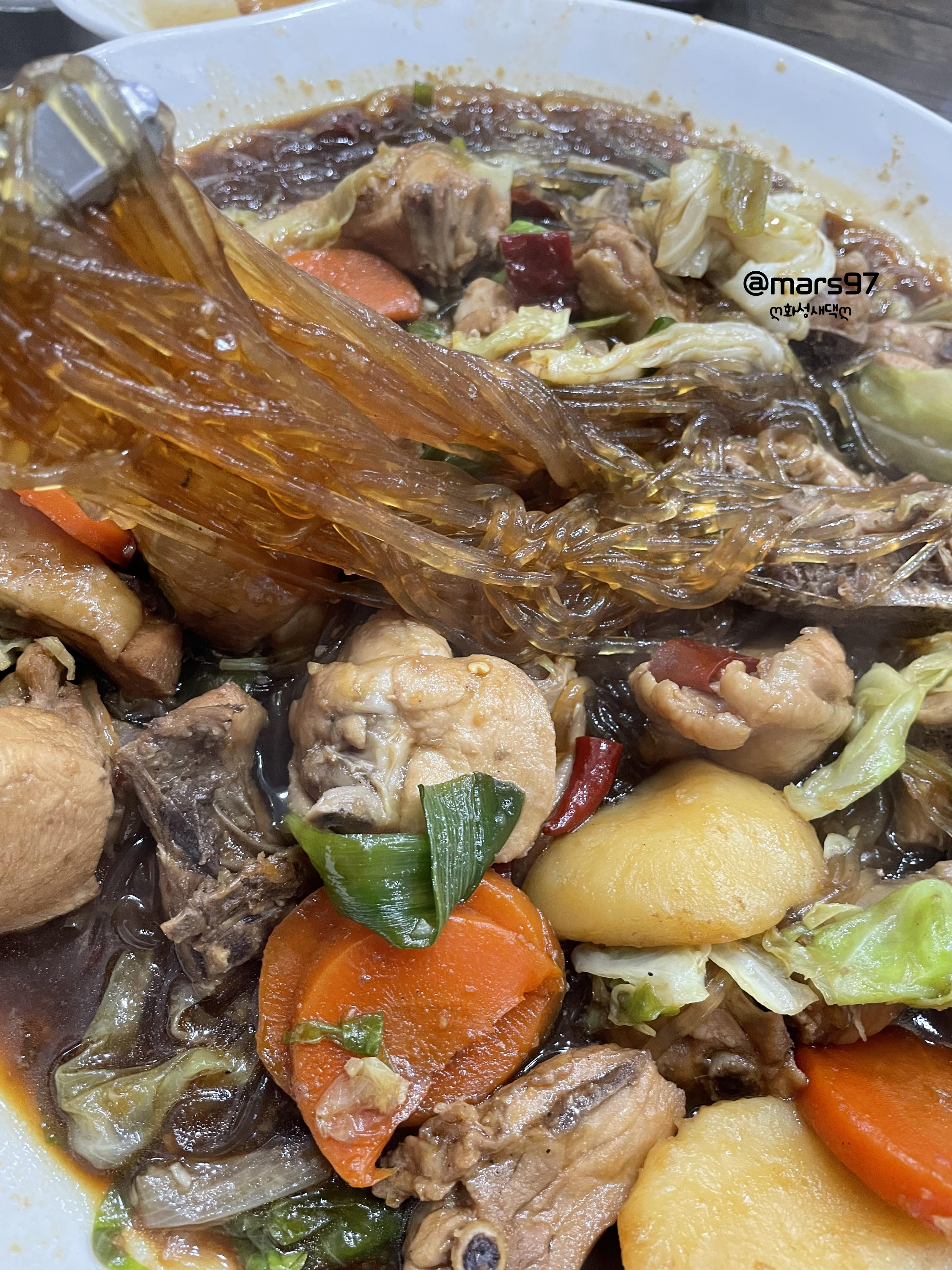 찜닭 밑에 숨어 있는 당면도 양이 어마어마해요
