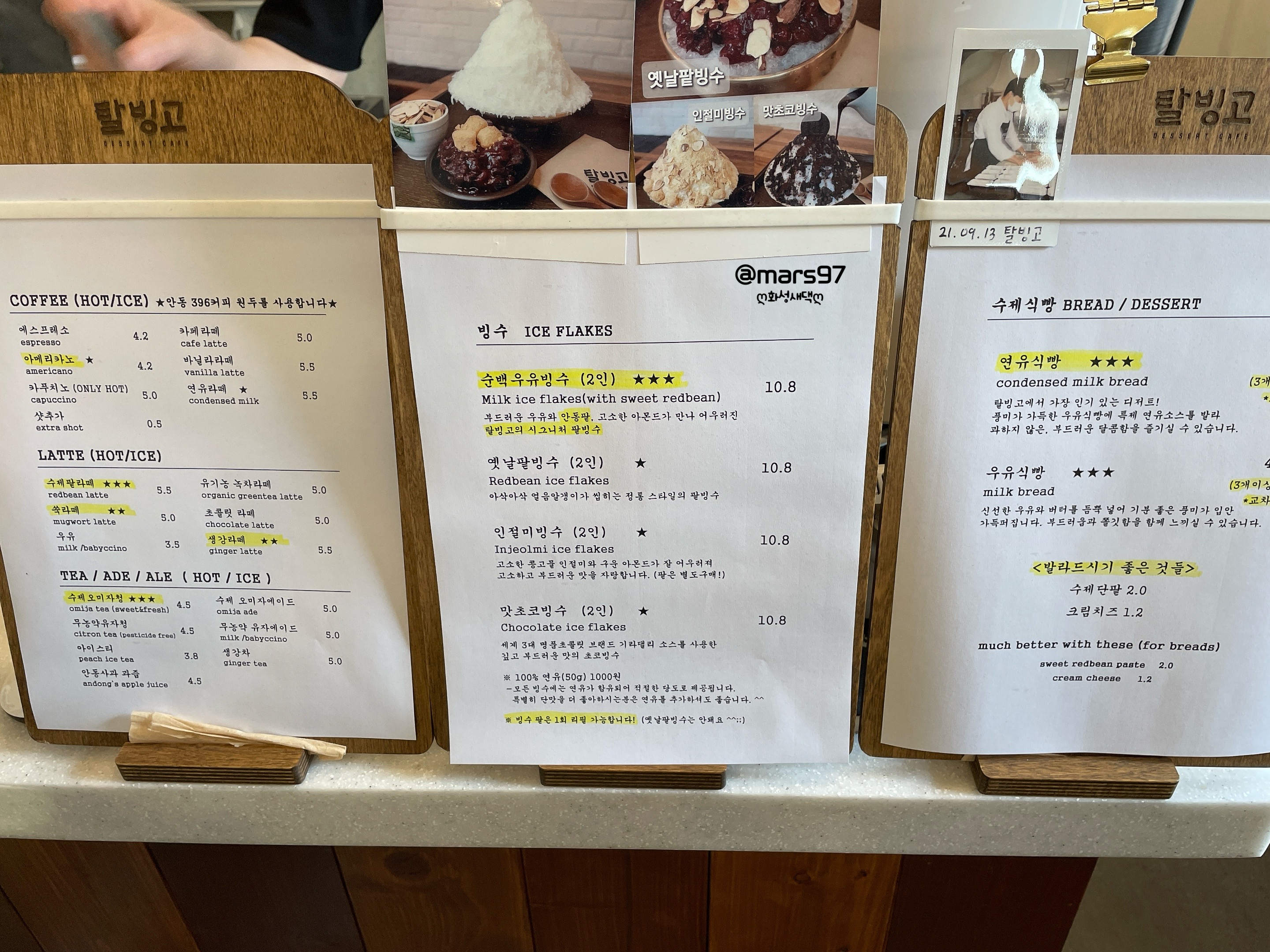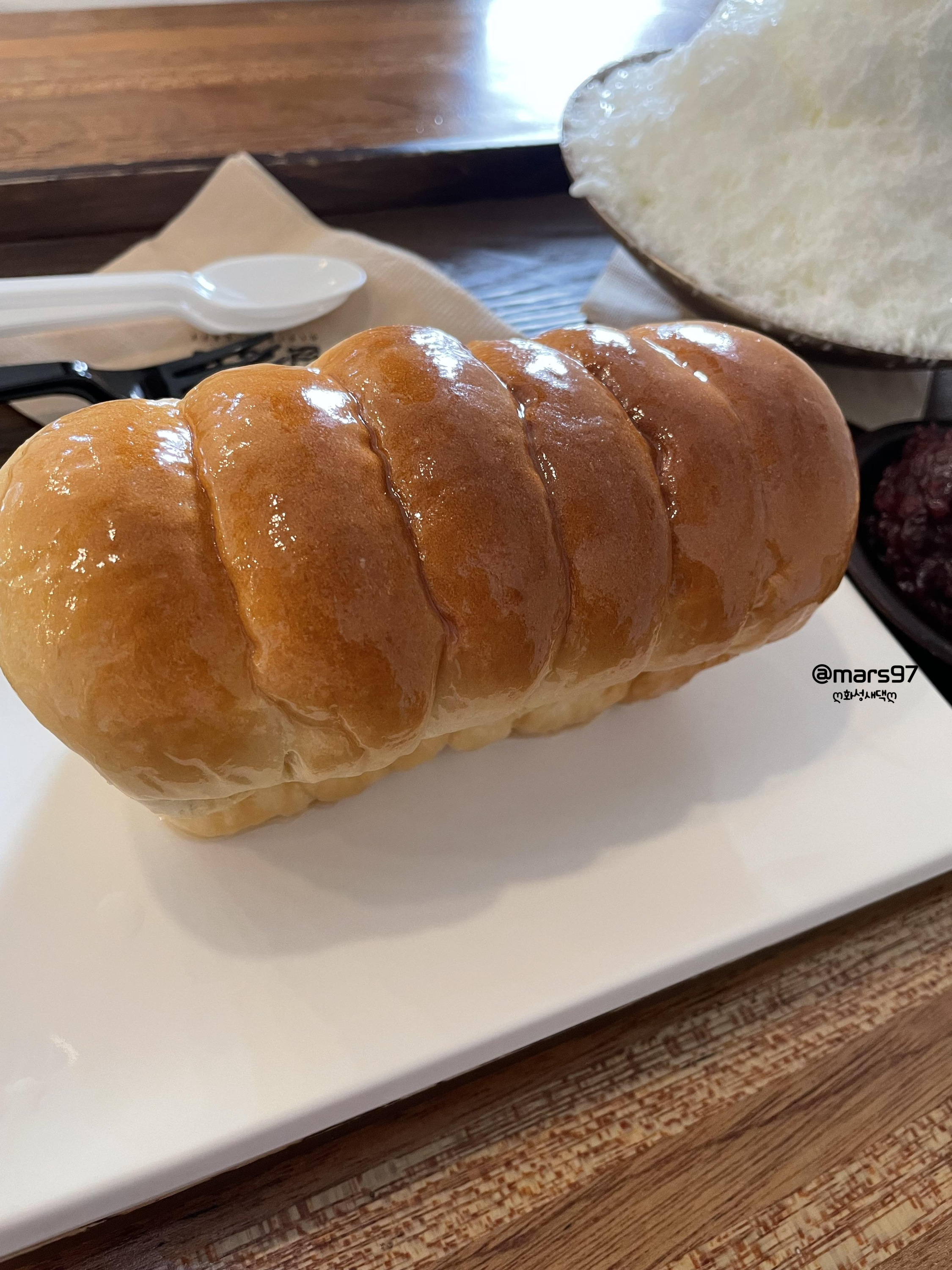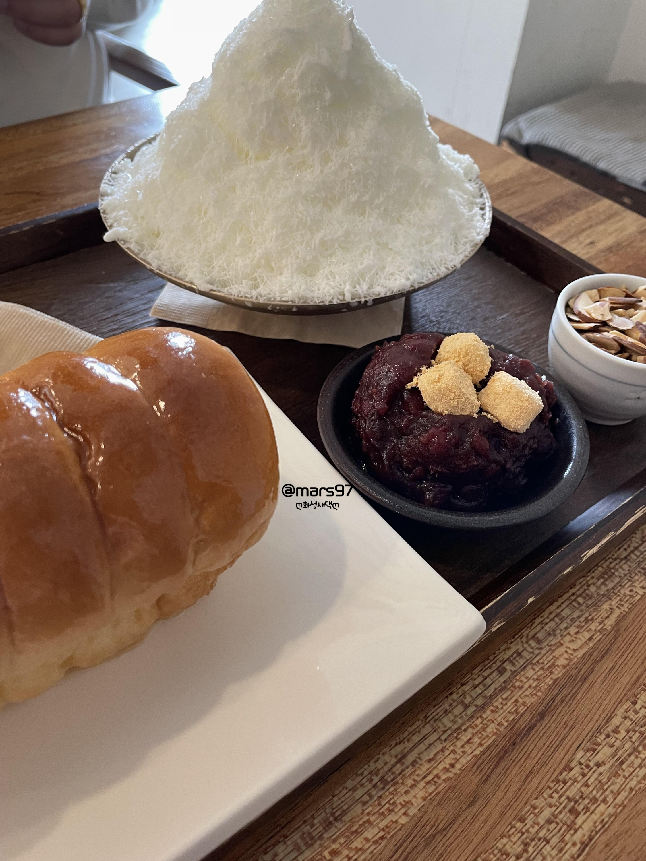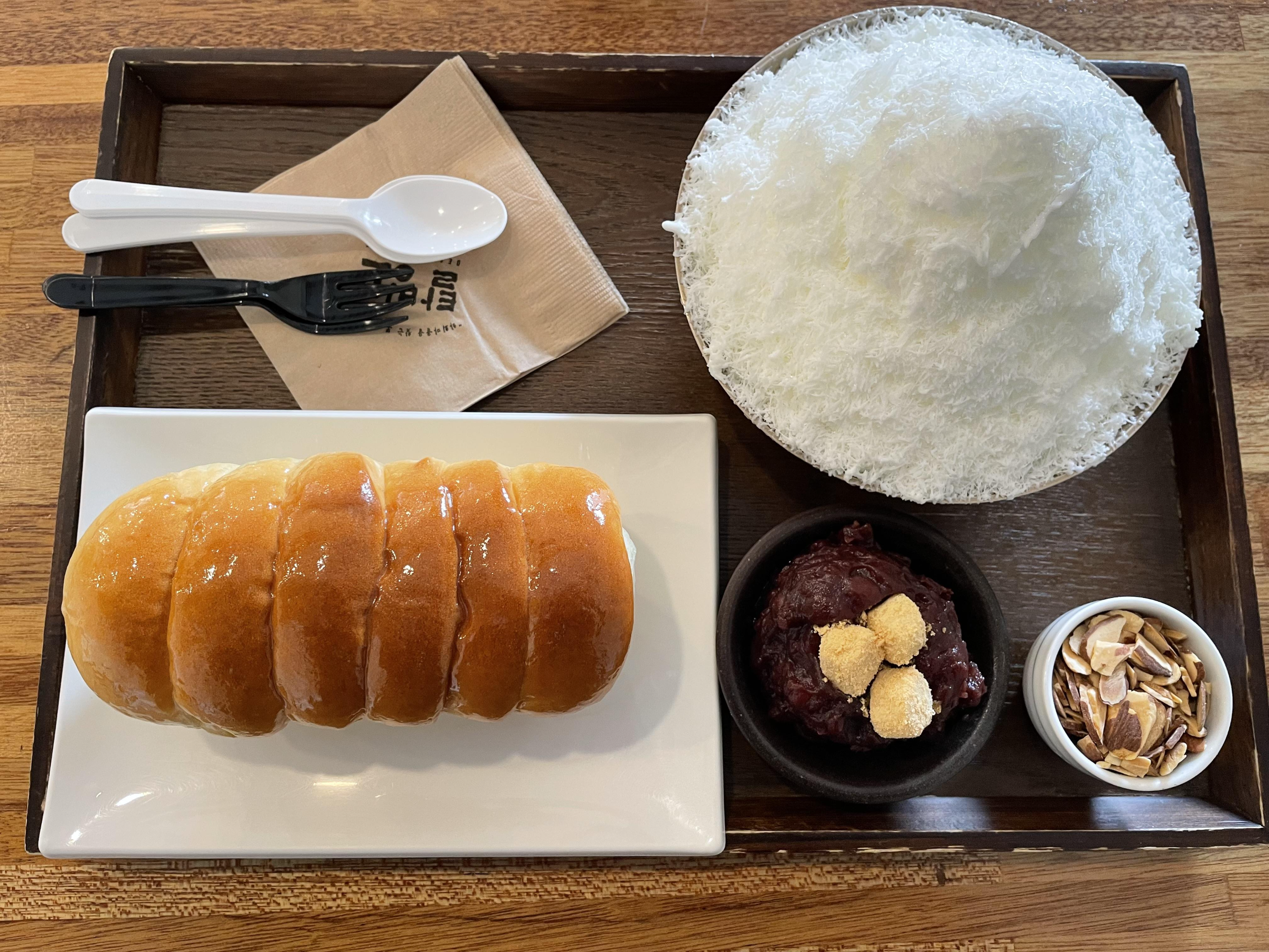 우유 팥빙수와 연유 식빵으로 주문했어요