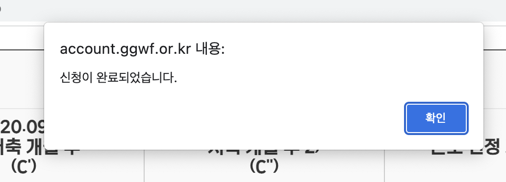 그럼 이렇게 신청 완료 팝업창이 떠요