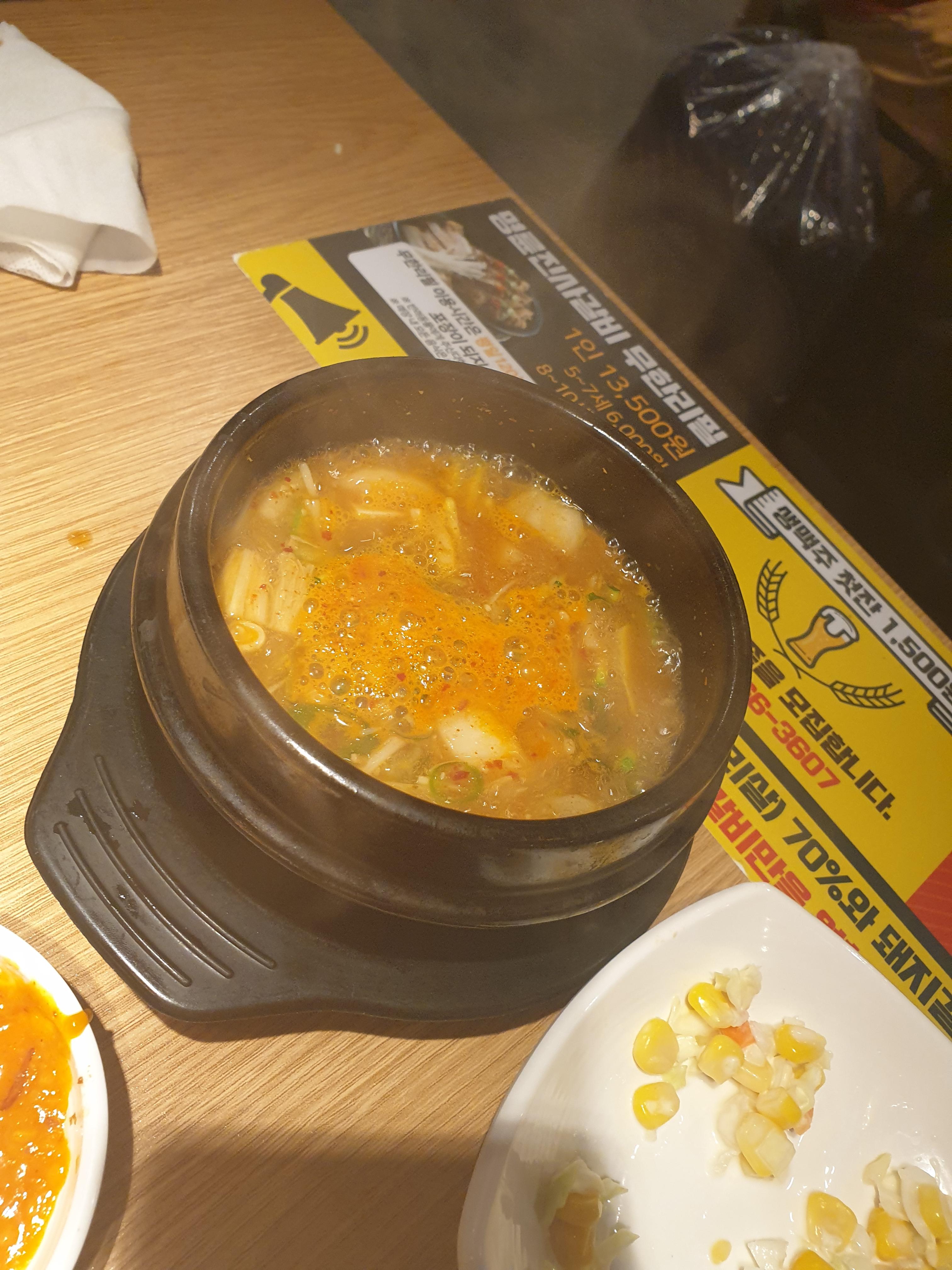 맛은 다른 고깃집에서 먹던 된장찌개 맛이에요
