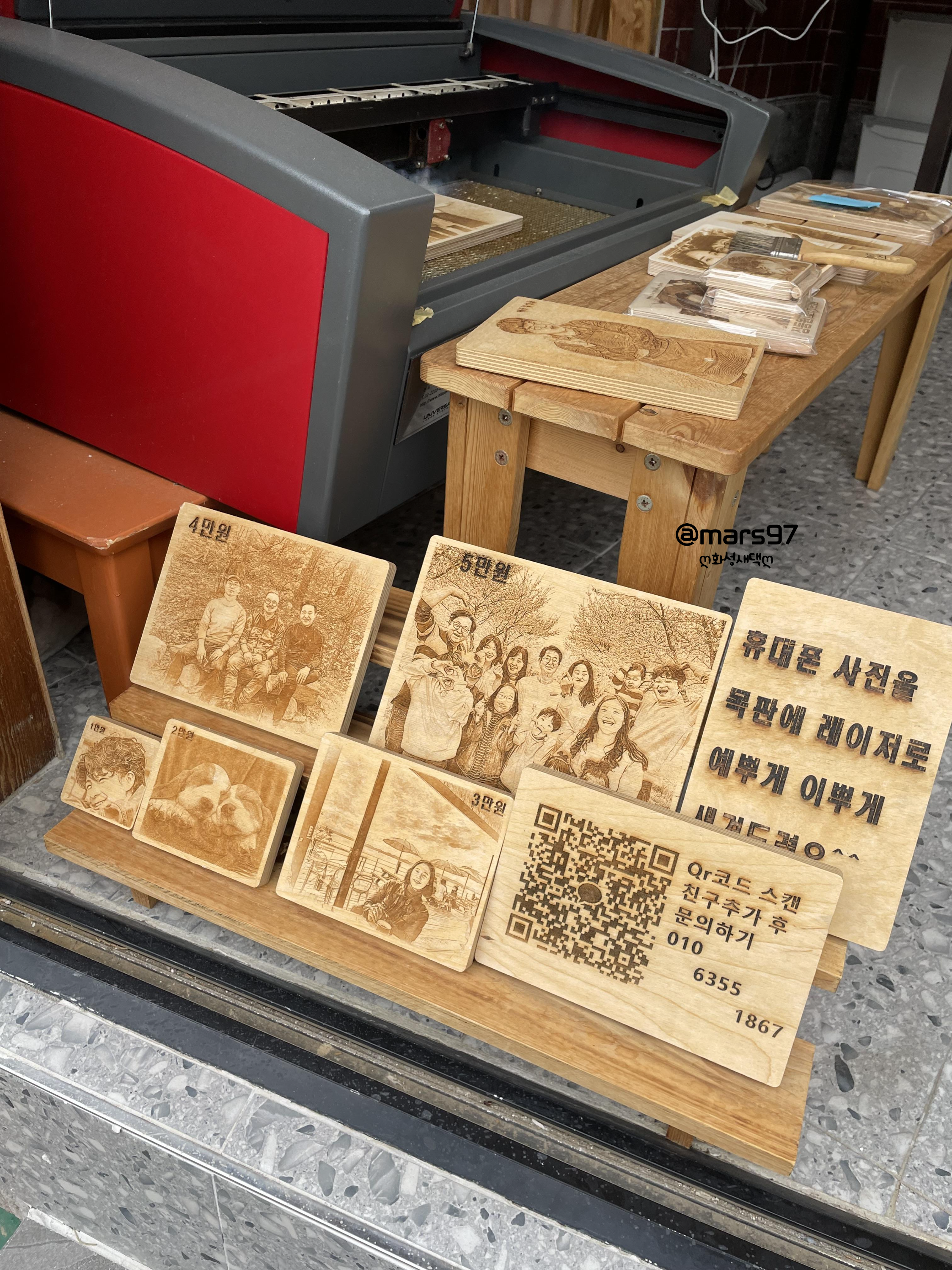 나무판에 레이저를 이용해 그림을 그려주는 기념품 가게가 있더라고요