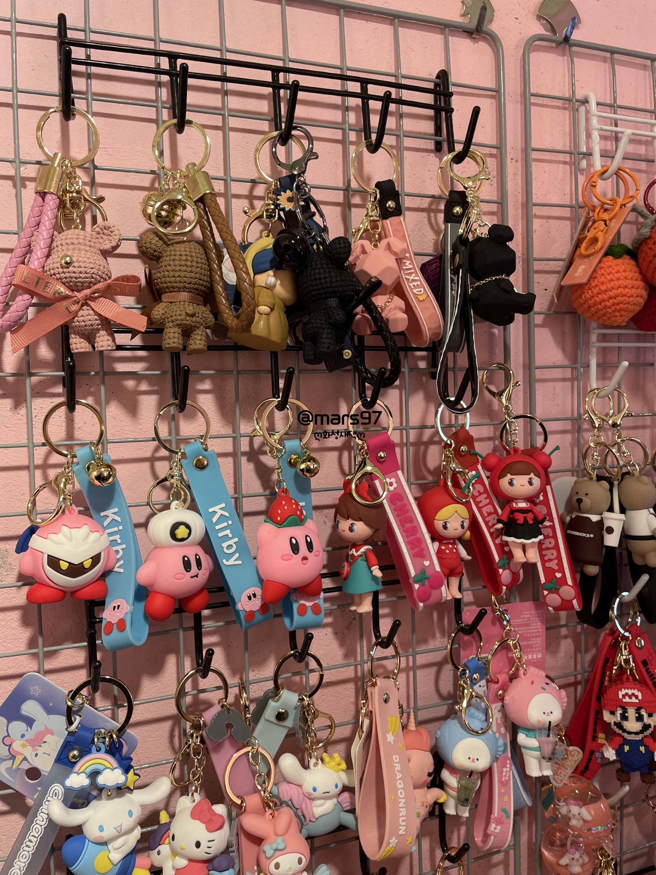 여기에서 양쪽 엄마들에게 선물로 줄 키링 두 개 골랐어요
