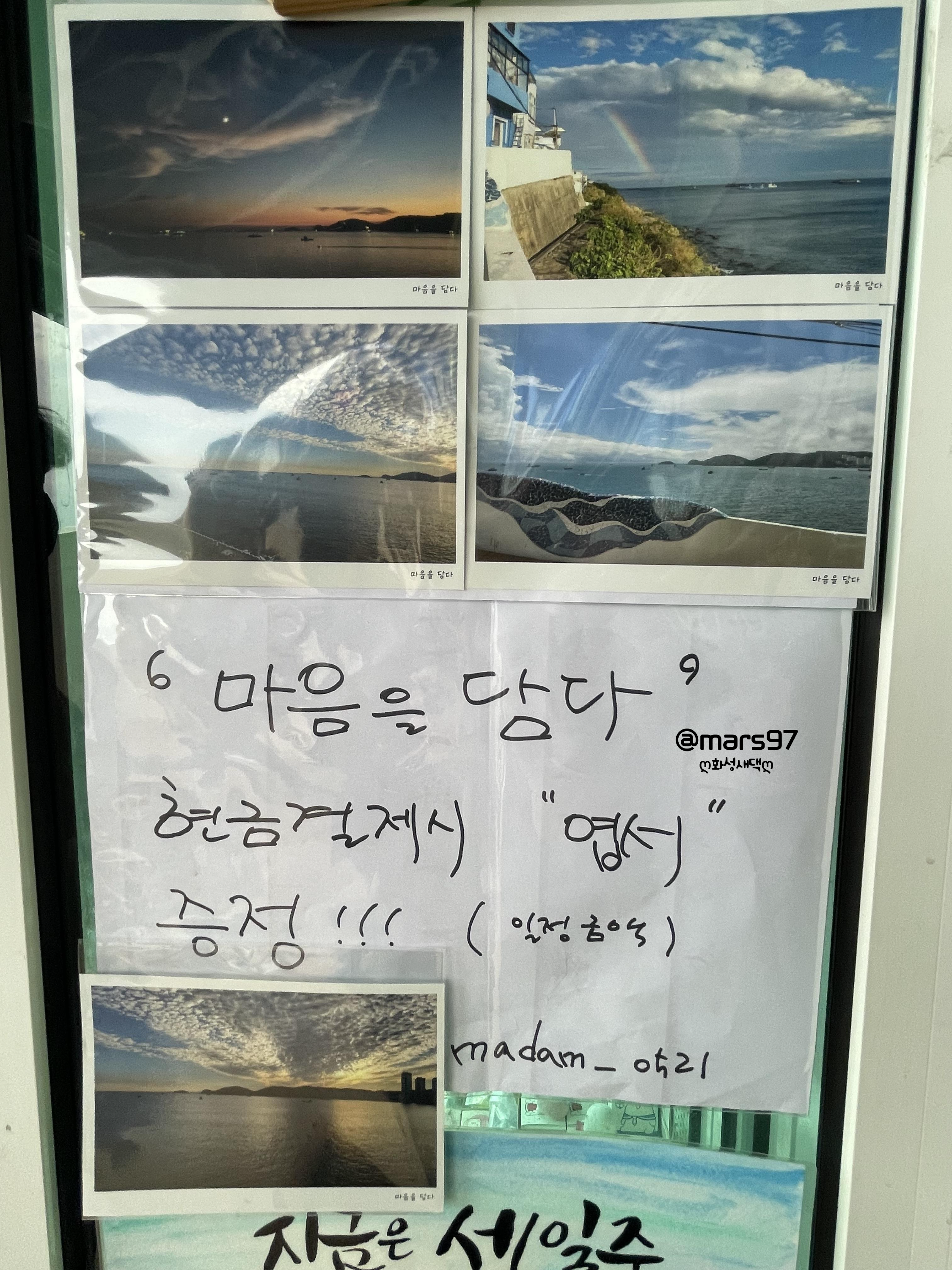 마음을 담다 에서 물건을 현금 결제하면 엽서를 주시더라고요