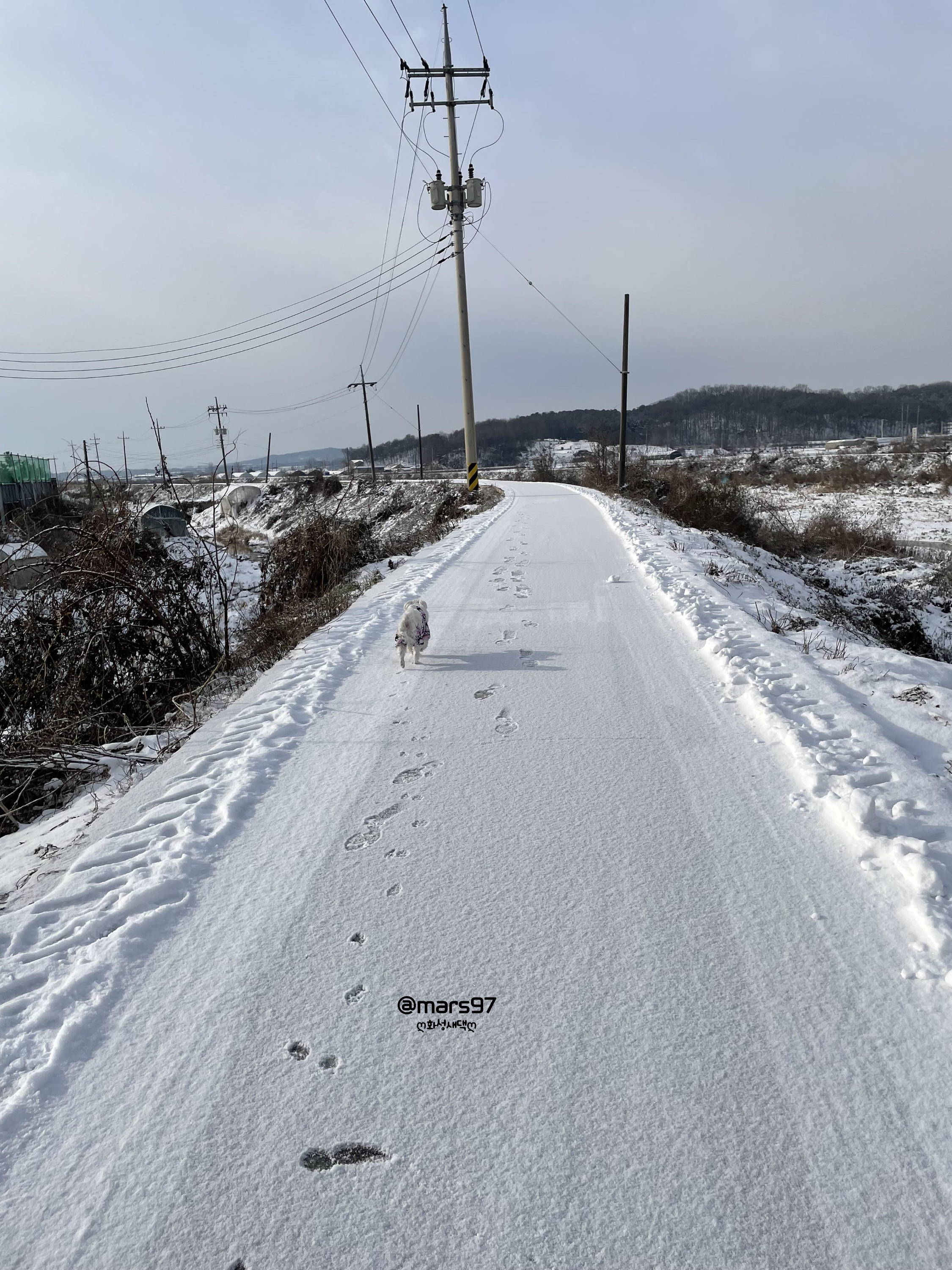 새벽에 눈이 왔는지 가는 내내 눈길이더라고요