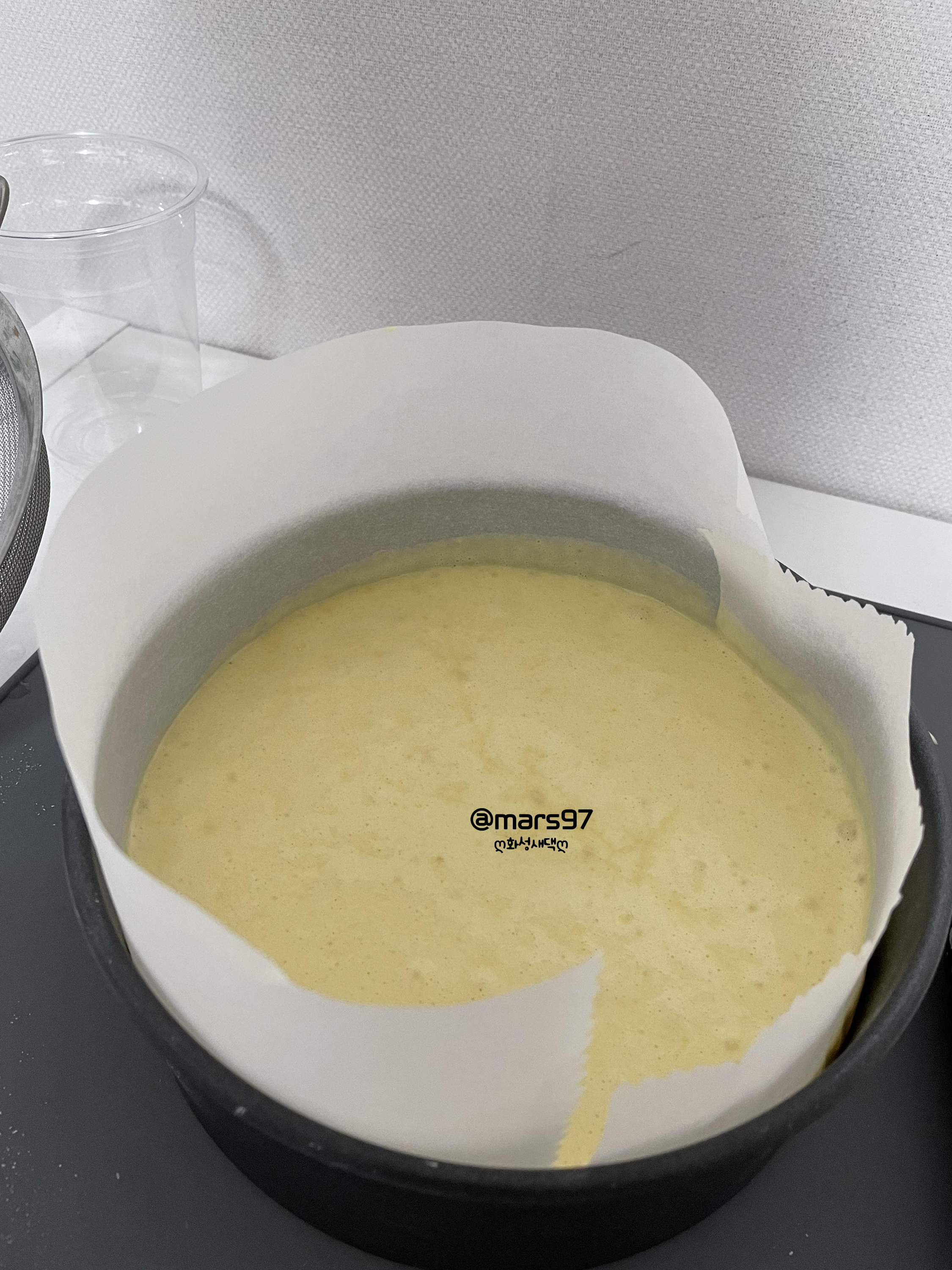 유산지를 깔아준 팬에 넣어서 기포를 빼주세요
