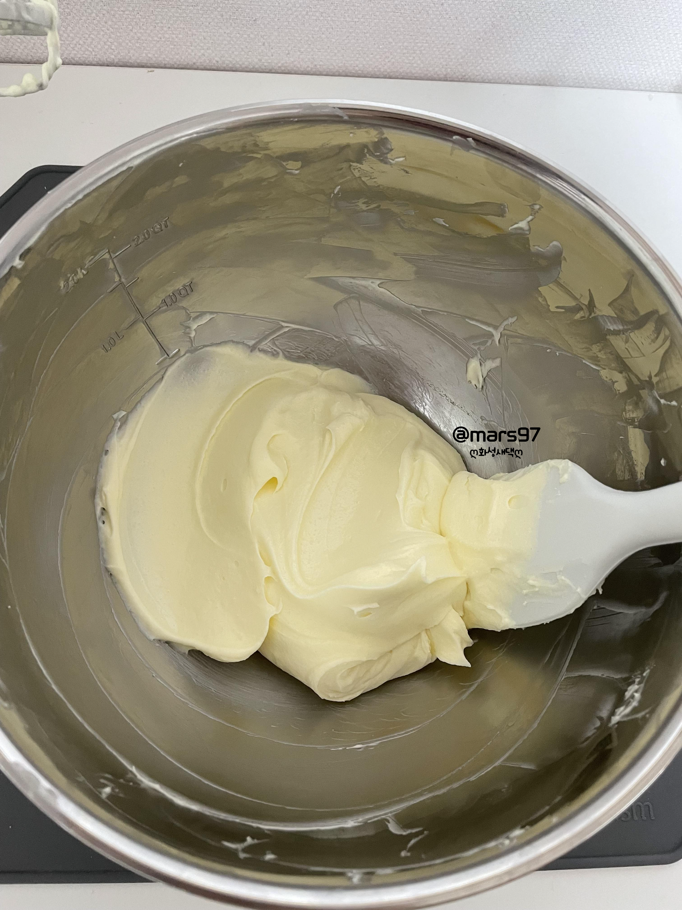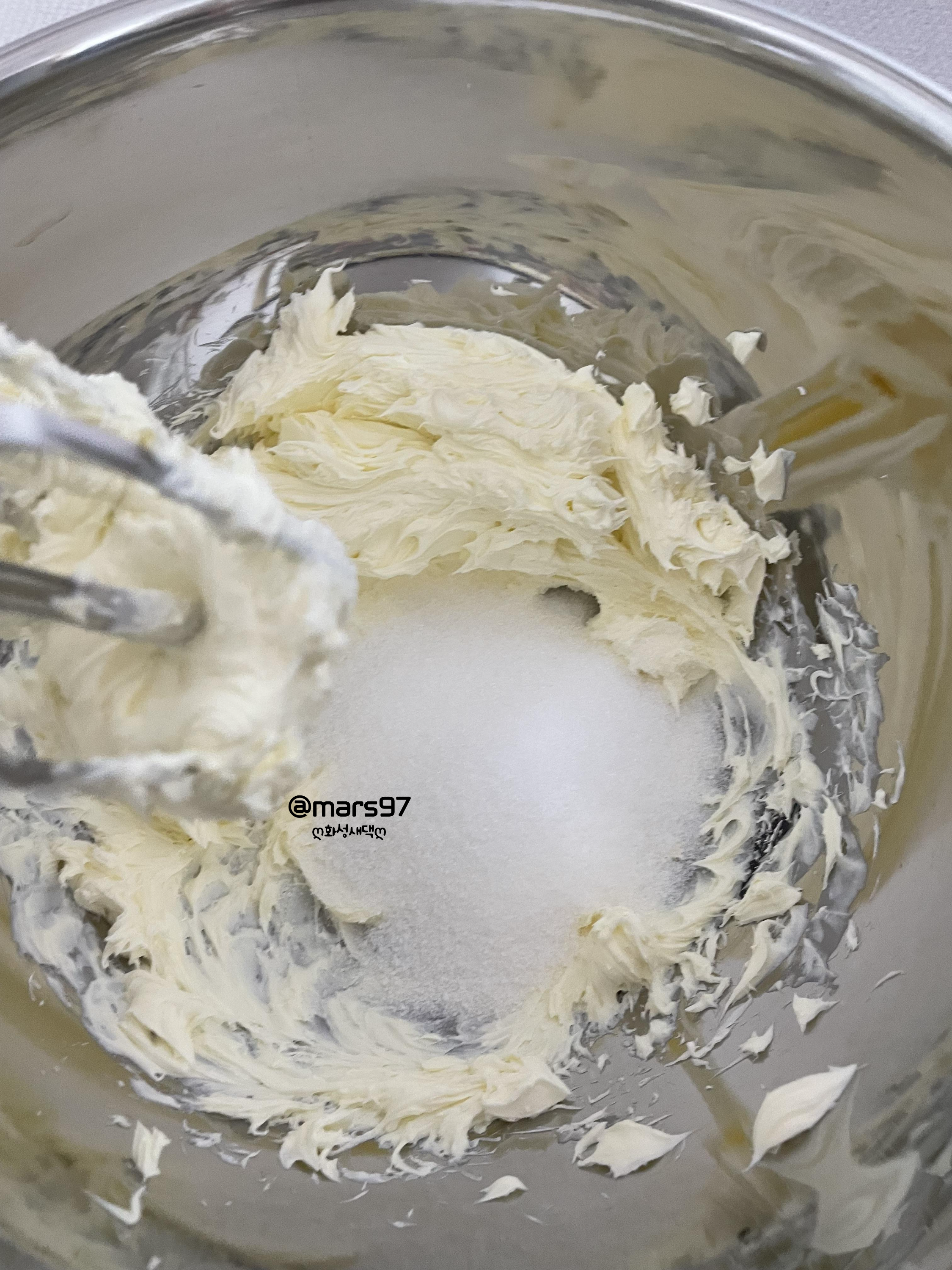마스카포네 크림치즈에 설탕을 2-3번 나눠 넣어가며 저속으로 휘핑해 주세요