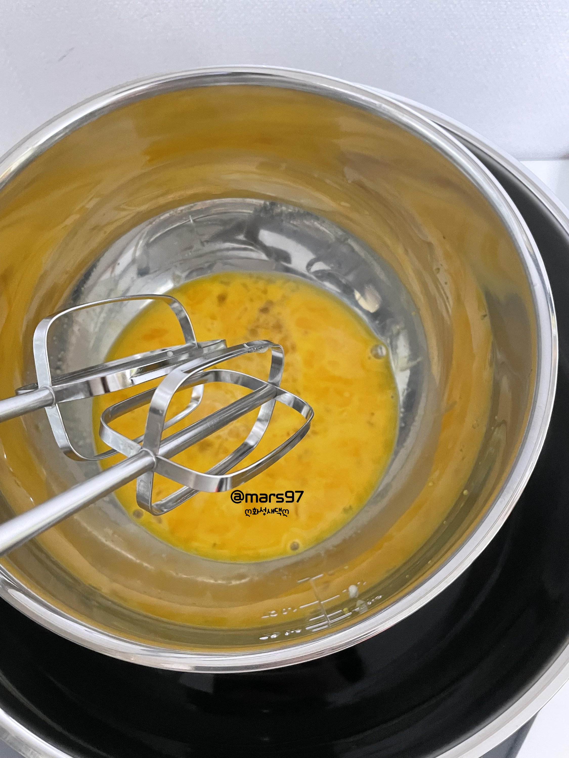 중탕으로 휘핑기를 이용해 잘 풀어 주세요