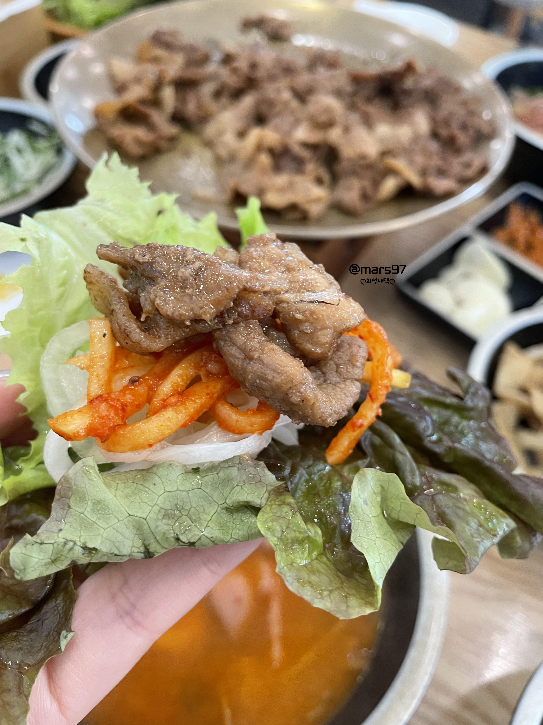 불백은 뭐니 뭐니 해도 쌈 싸 먹는 게 제일 맛있는 것 같아요