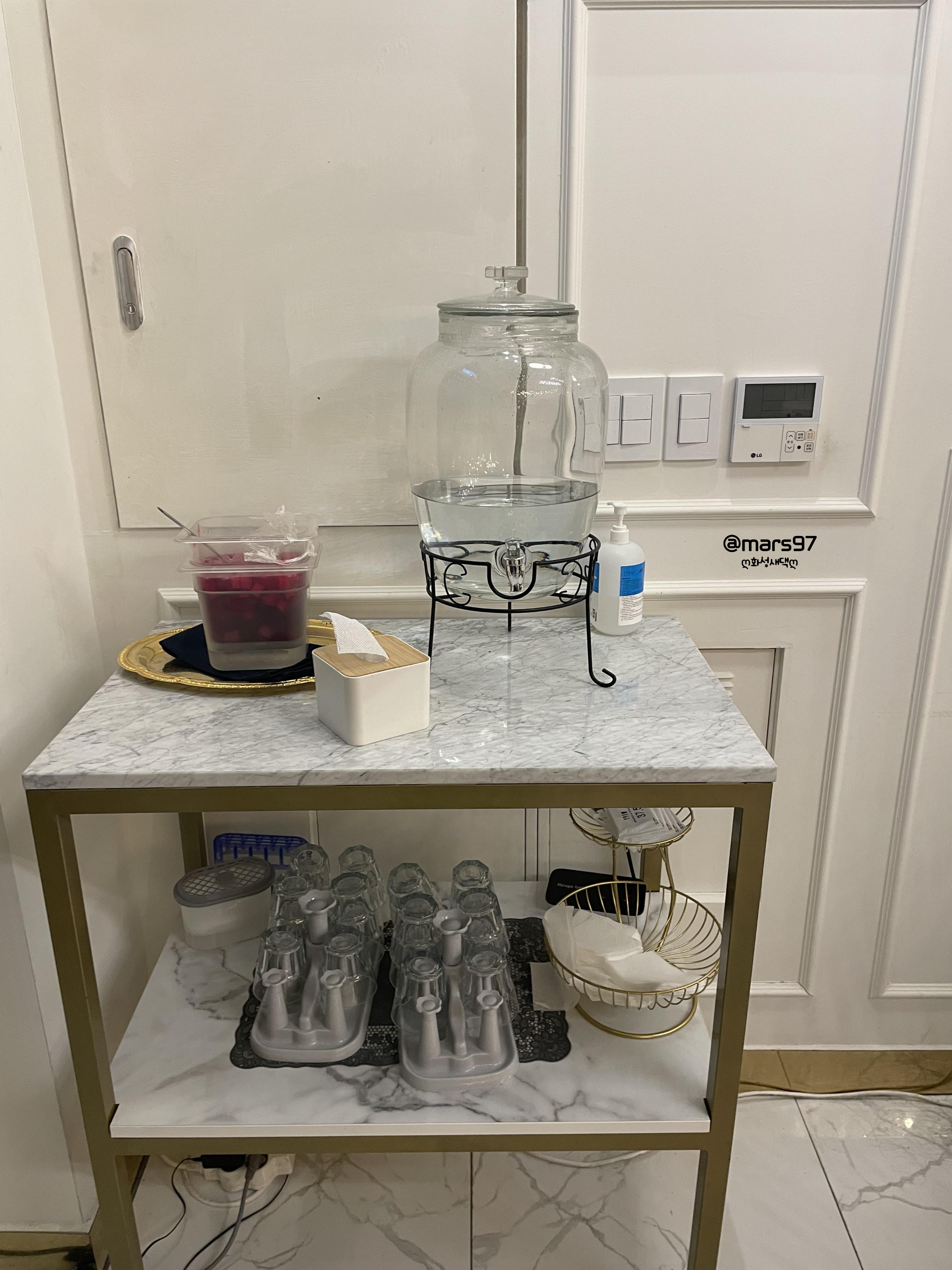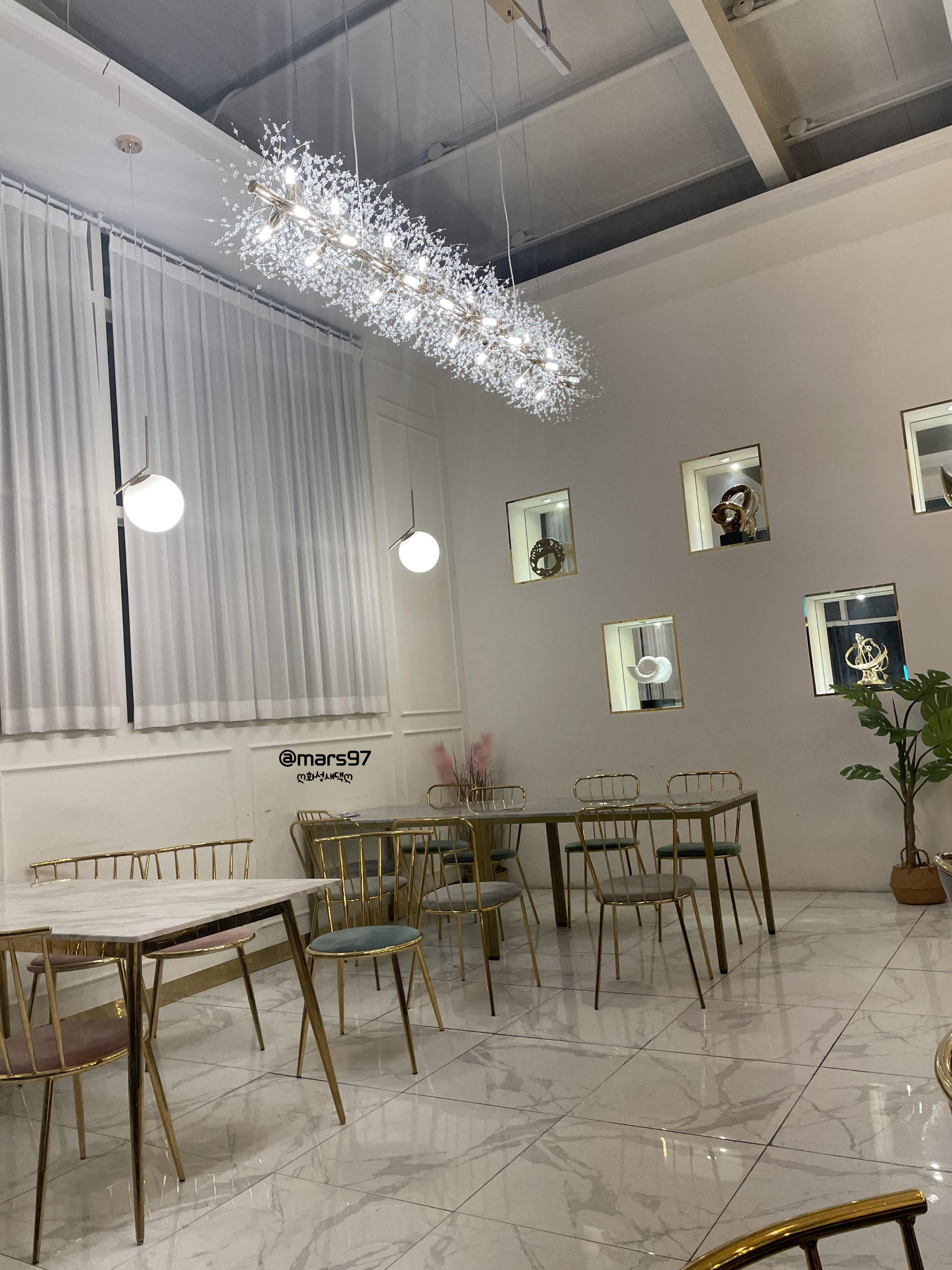내부는 대리석 바닥닥과 대리석 테이블 그리고 마카롱 의자로 고급스럽더라고요