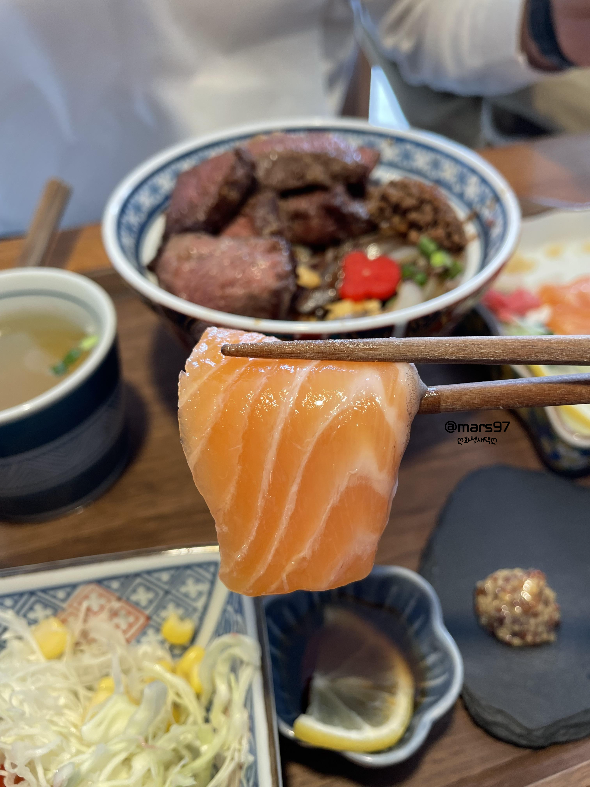 #돈까스 #덮밥 #연어회 #사케