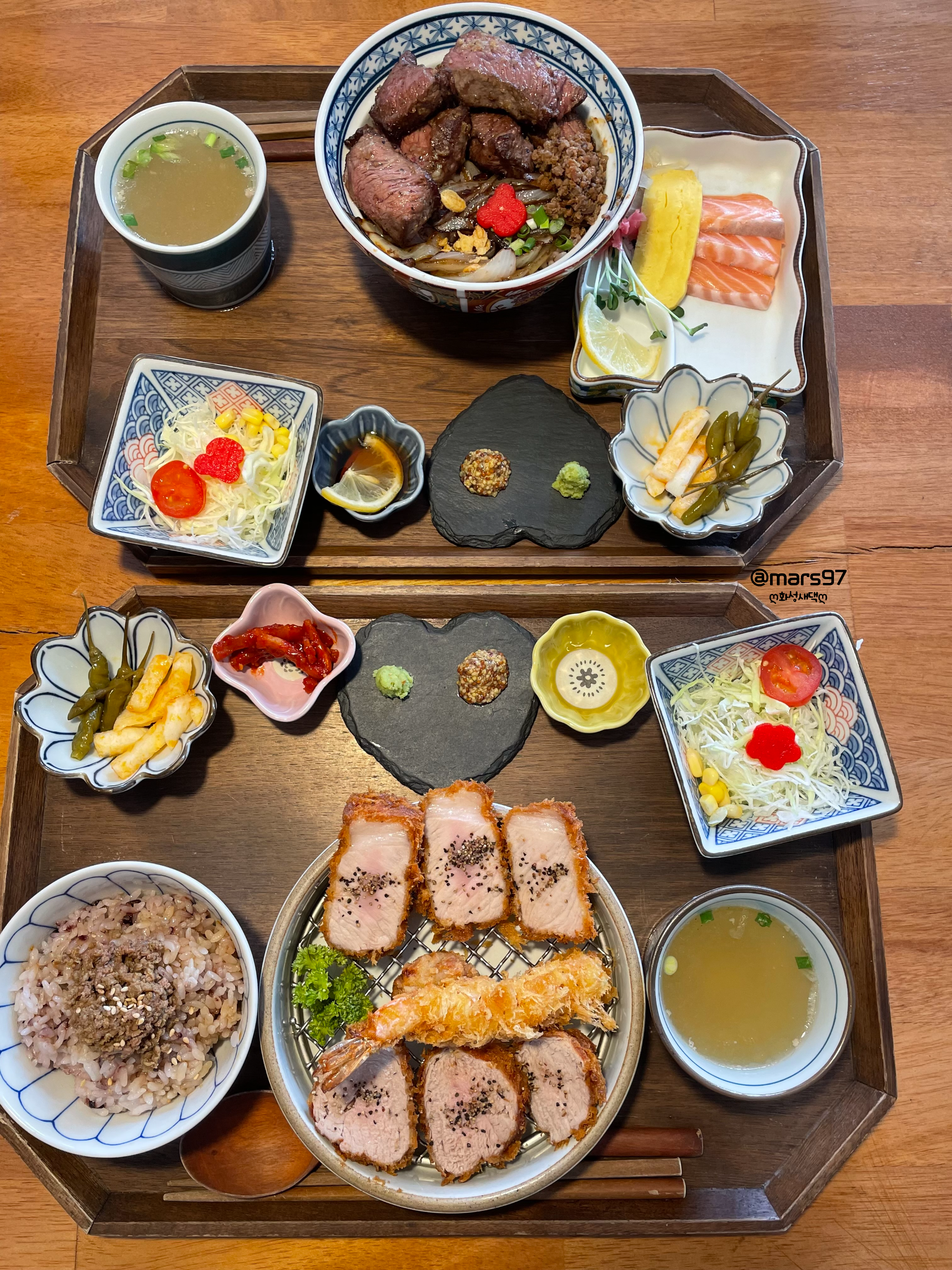 남편님은 스테이크 소보로동 정식