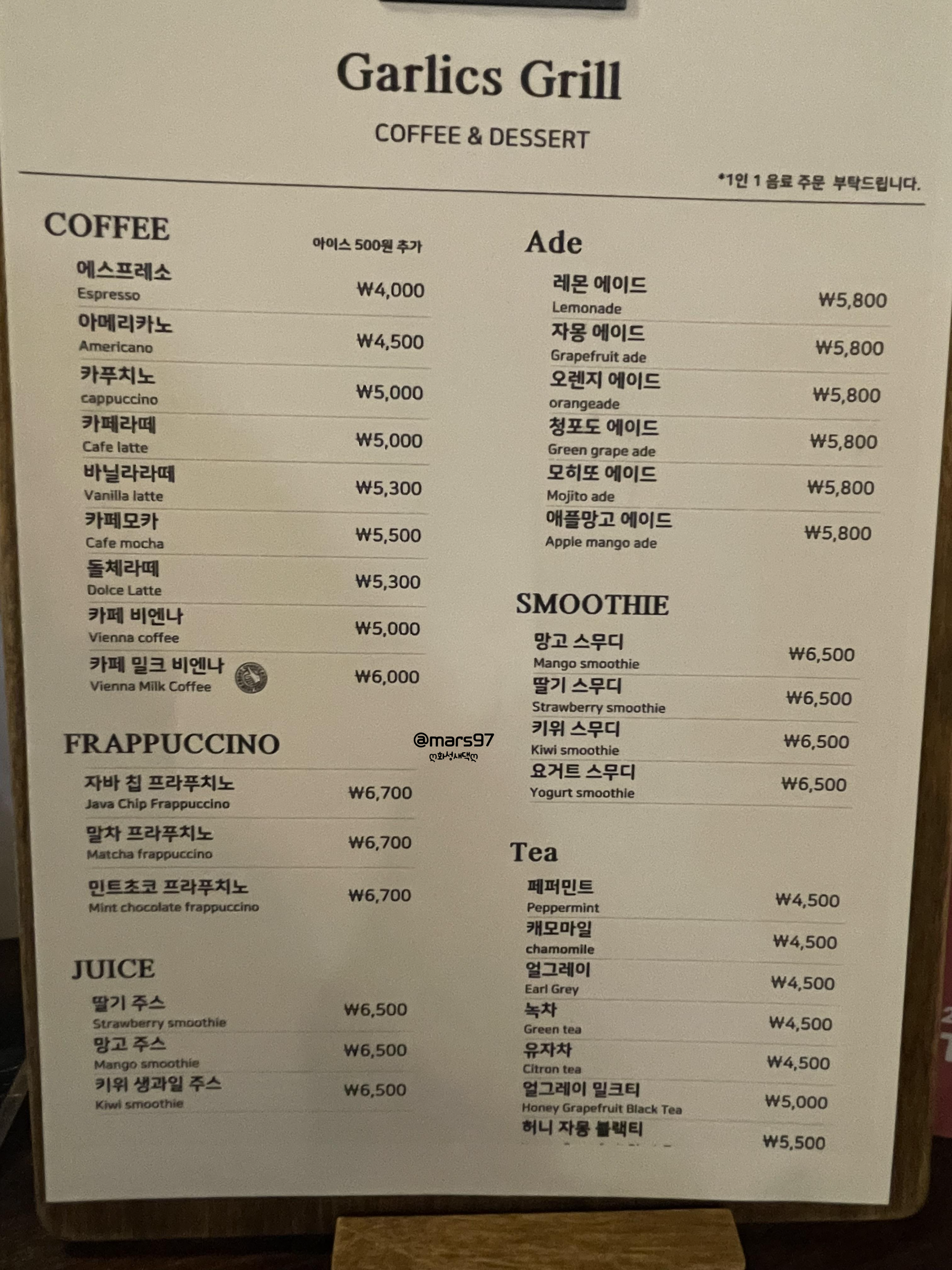 커피 메뉴도 생각보다 많아서 커피도 마시고 가기로 했어요