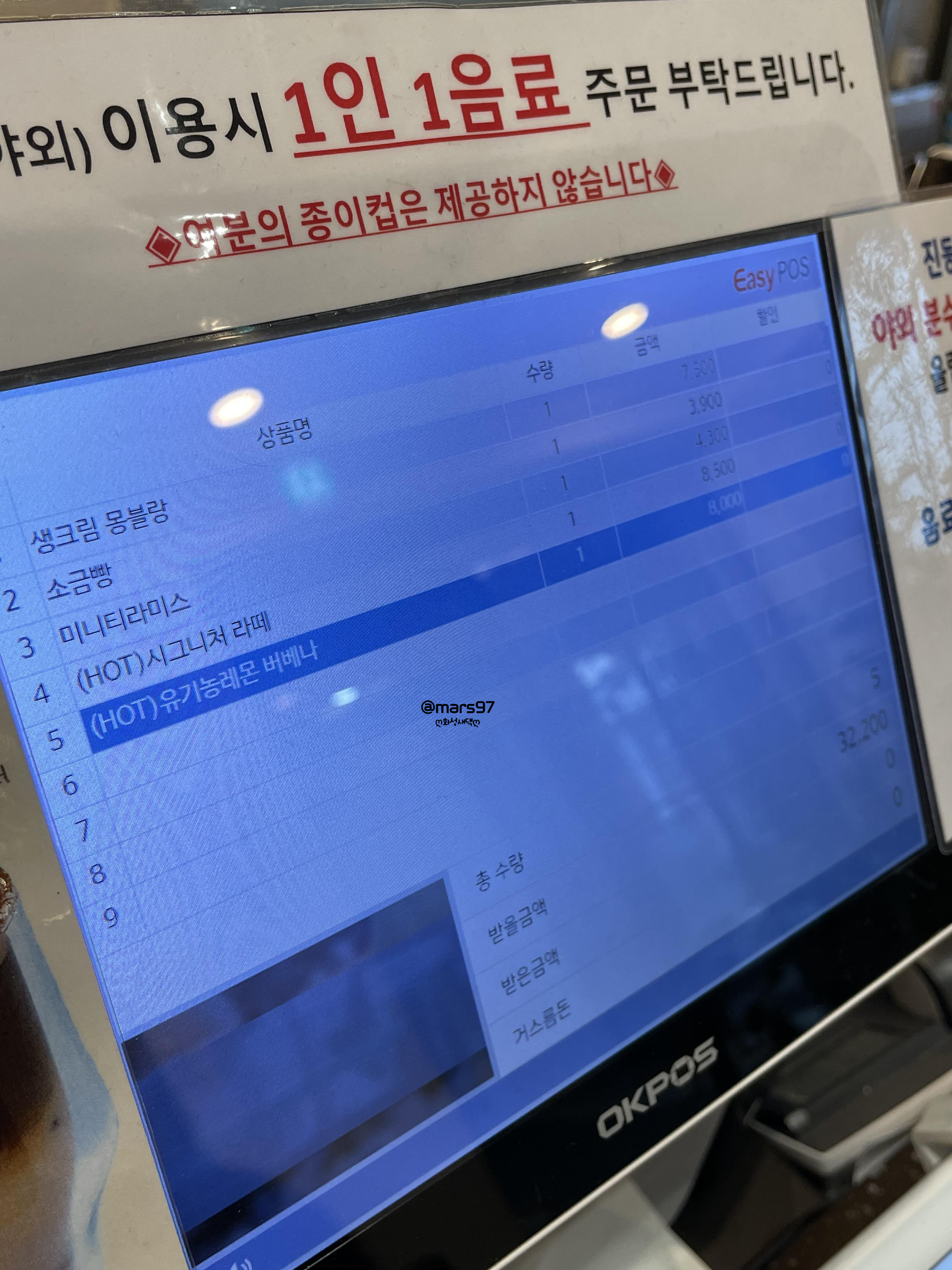 출입옆쪽에 메뉴가 있길래 남편님과 뭐 마실지 미리 생각하고 들어갔어요