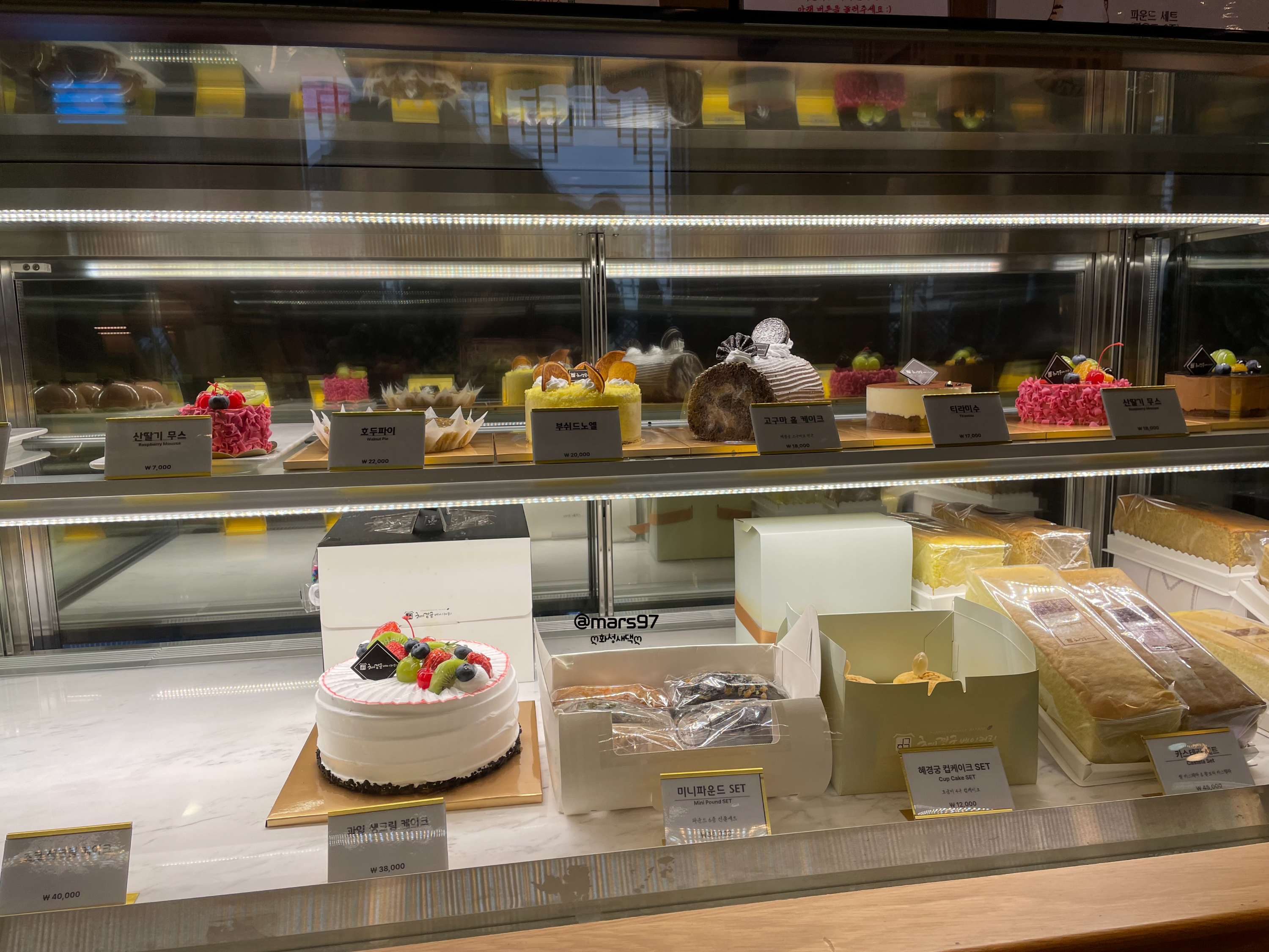 쇼케이스 안에도 조각케이크를 비롯해 홀케이크와 머핀 등등