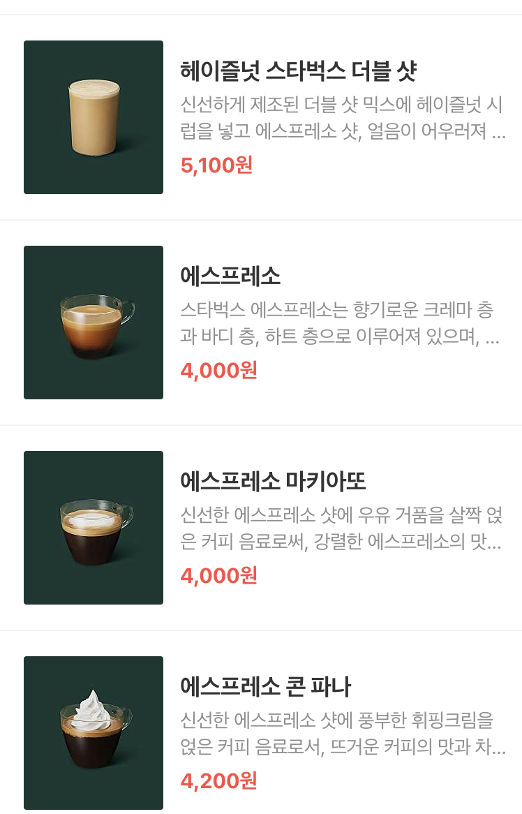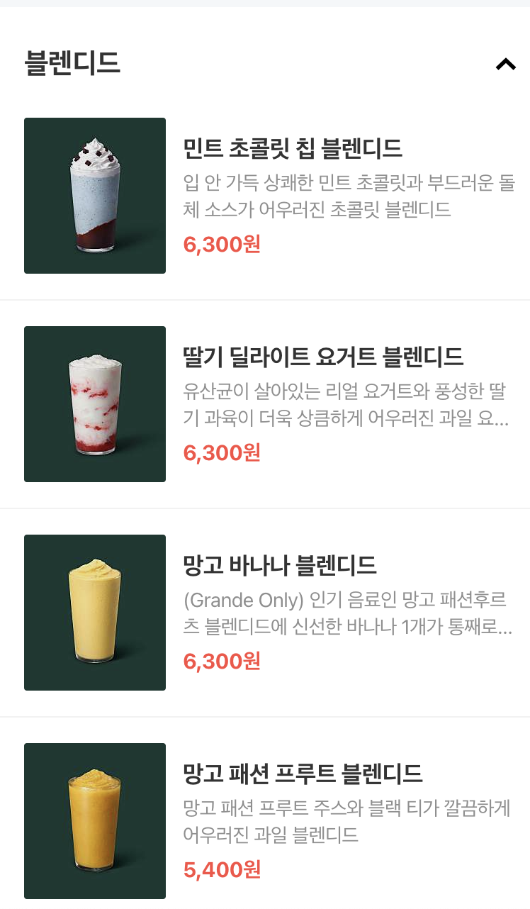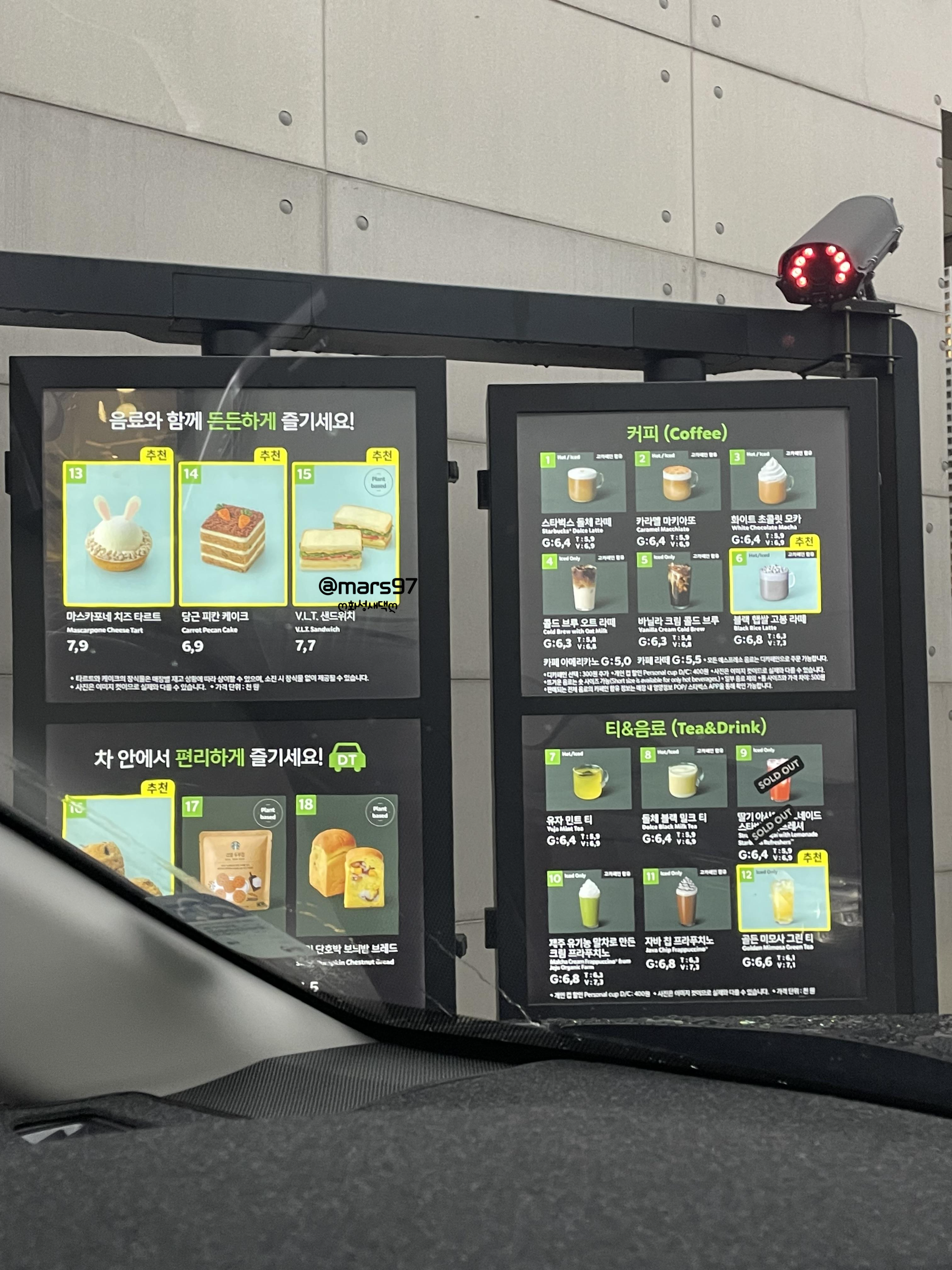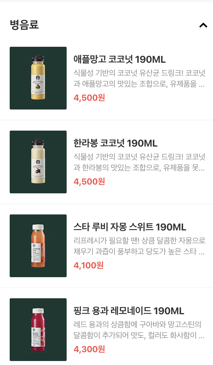 스타벅스 이천사음 DT점에서 주문 가능한 메뉴 가져와봤어요