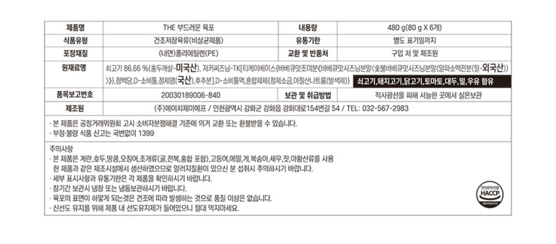 성분표는 육포공방 공식 홈페이지에서 가져왔어요