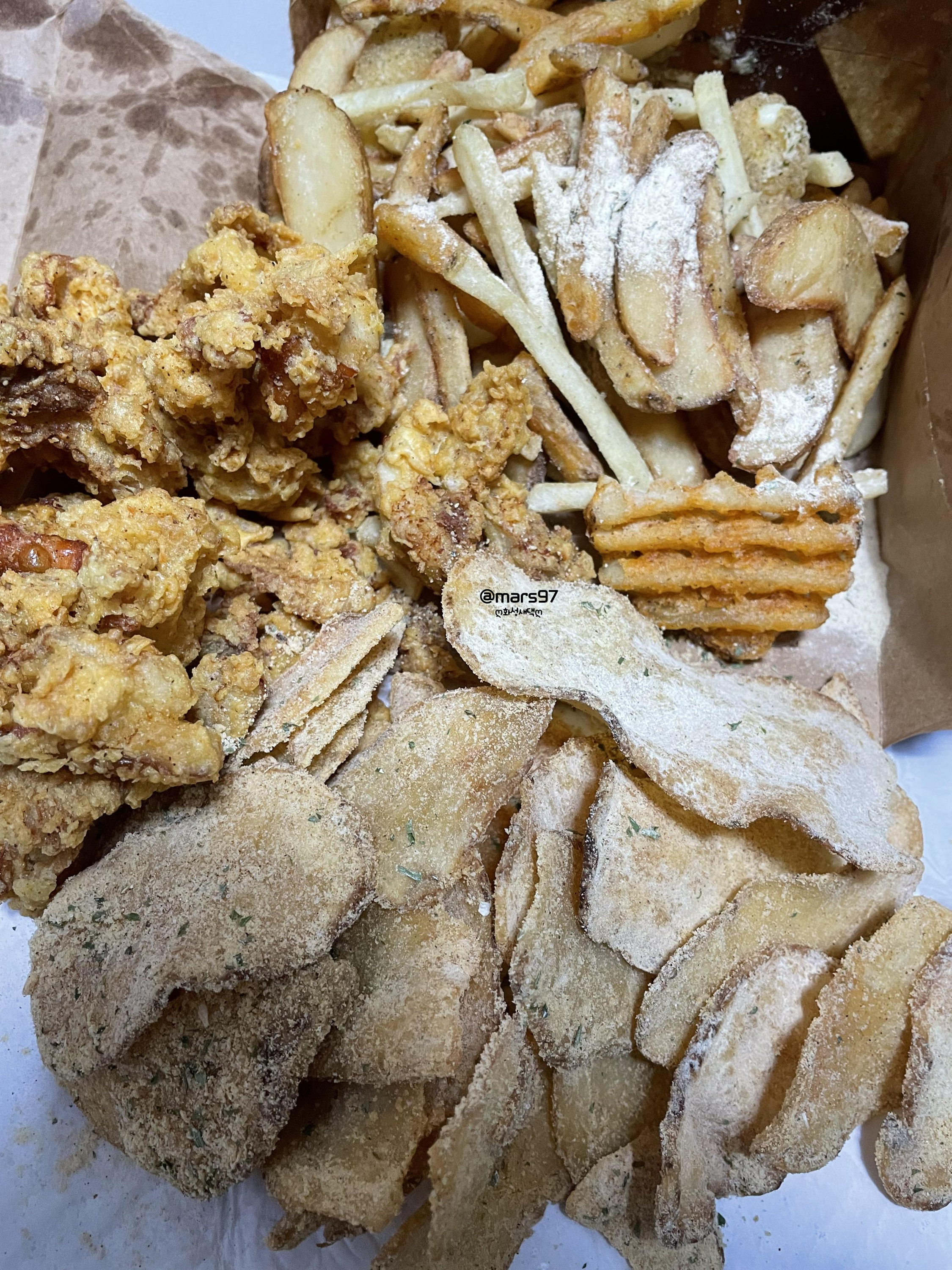 감자튀김과 노랑칩스 그리고 3종세트 중에 후라이드까지~