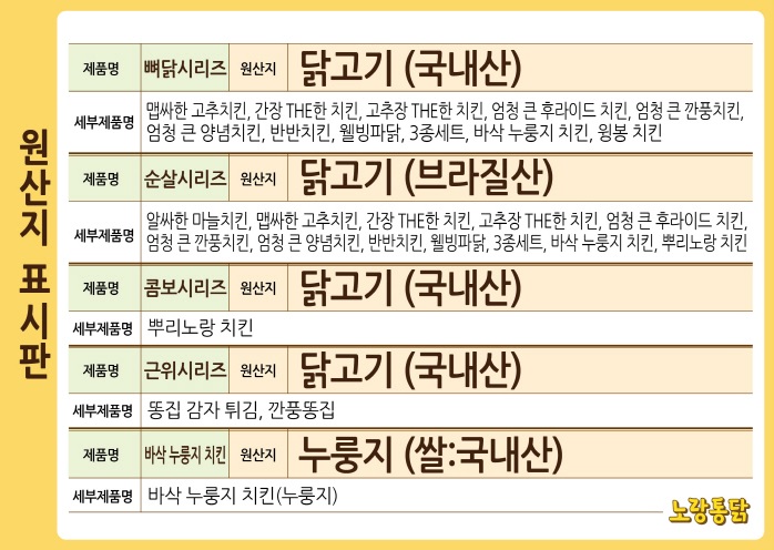 노랑통닭 홈페이지에서 원산지 캡쳐해서가져 왔어요
