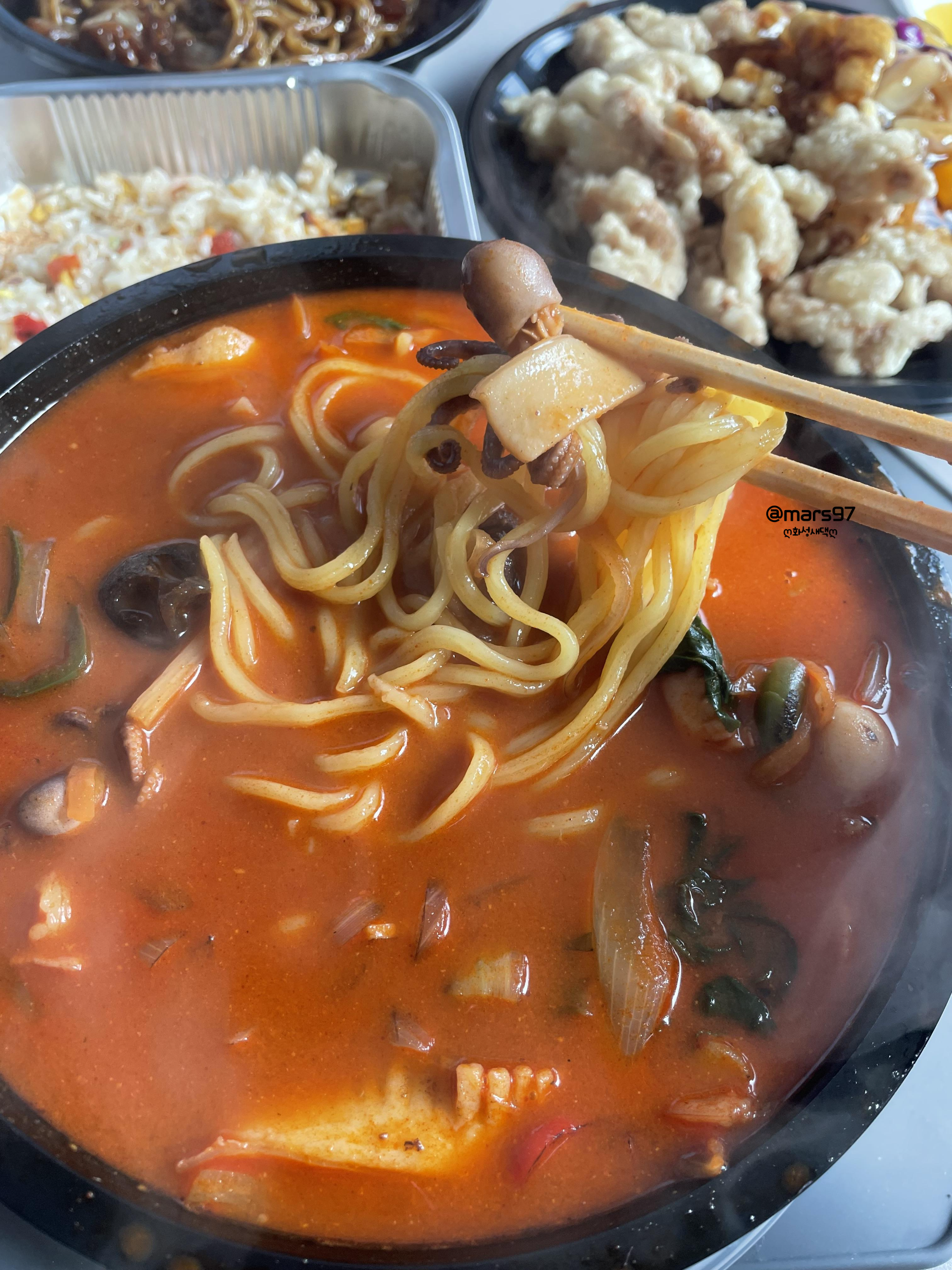 국물에서 불맛이 진하게 나고 적당히 매콤한 게 계속 당기는 그런 맛!이예요