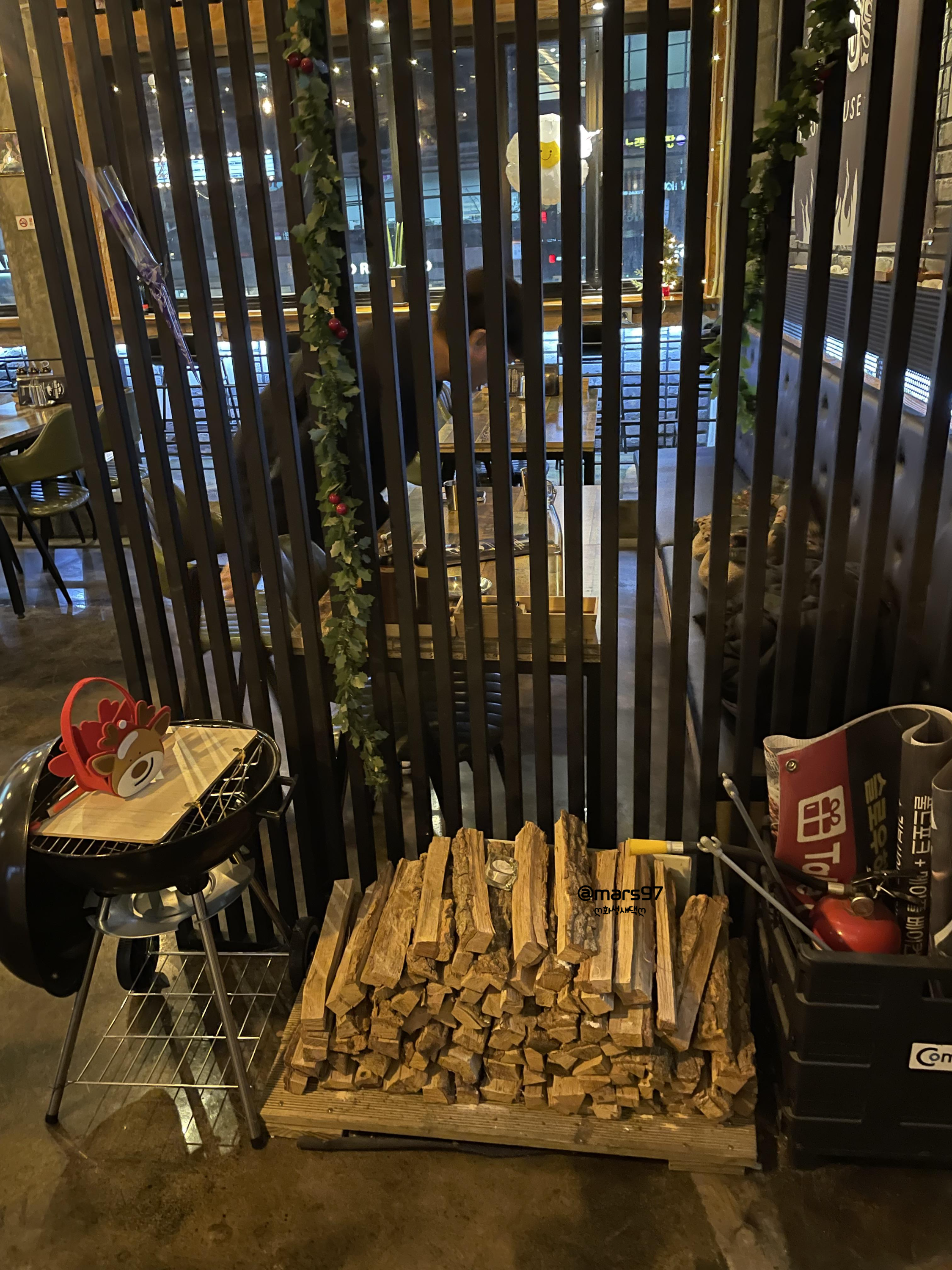 안으로 들어가자마자 장작과 화로가 눈에 띄더라고요~
