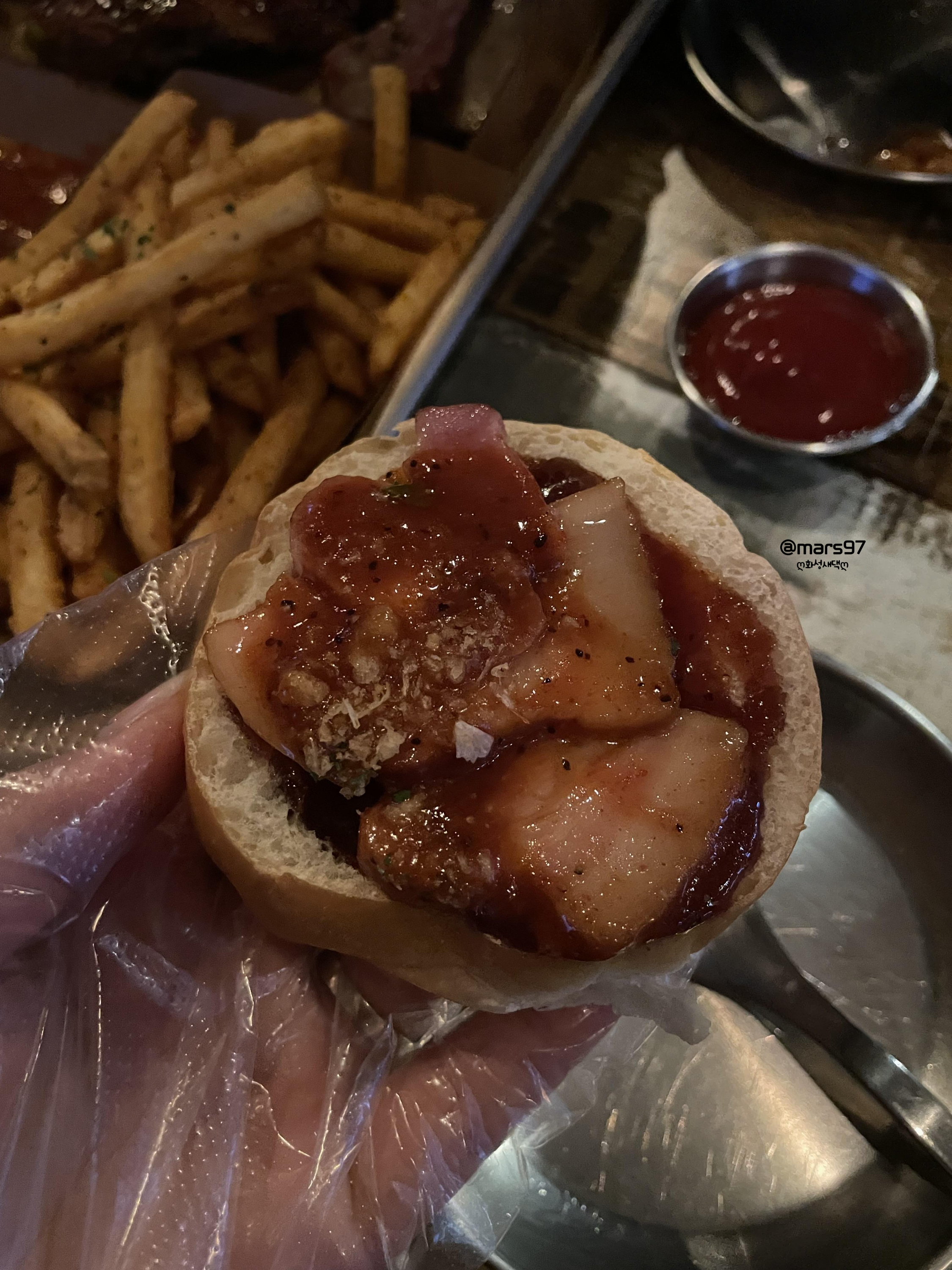 베이컨 대신 통삼겹 BBQ로 바뀐 구성으로 주문했어요