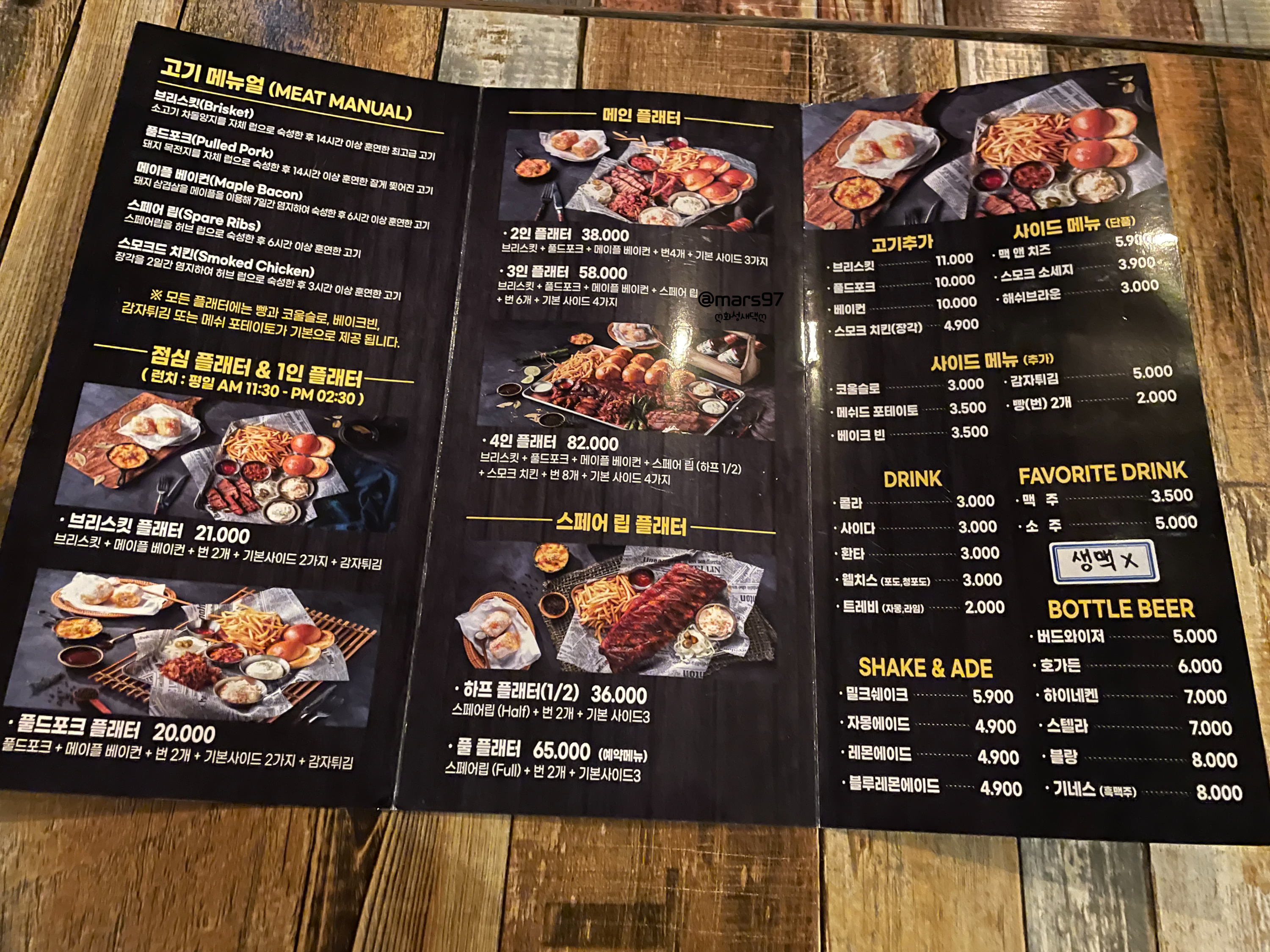 메뉴판에 나와있는 텍사스 바베큐 맛있게 먹는 방법을 읽어 주었어요~