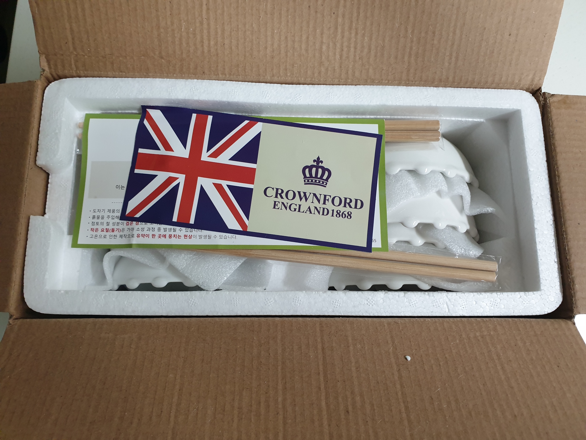 그릇 하나 하나에 크라운포드 라고 쓰여진 스티커가 붙어 있더라구요