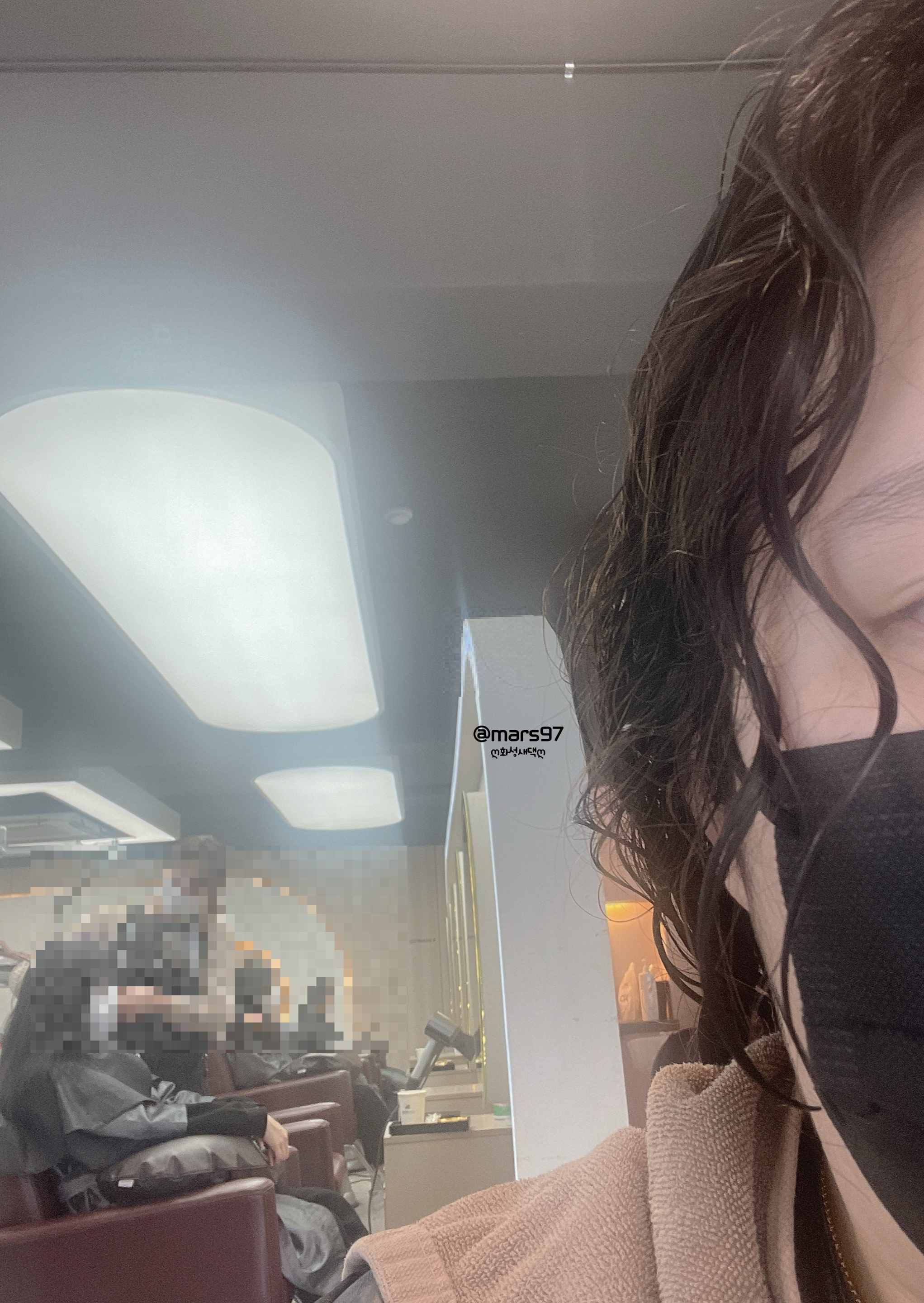 시술이 끝난 후 머리 말리기 직후예요