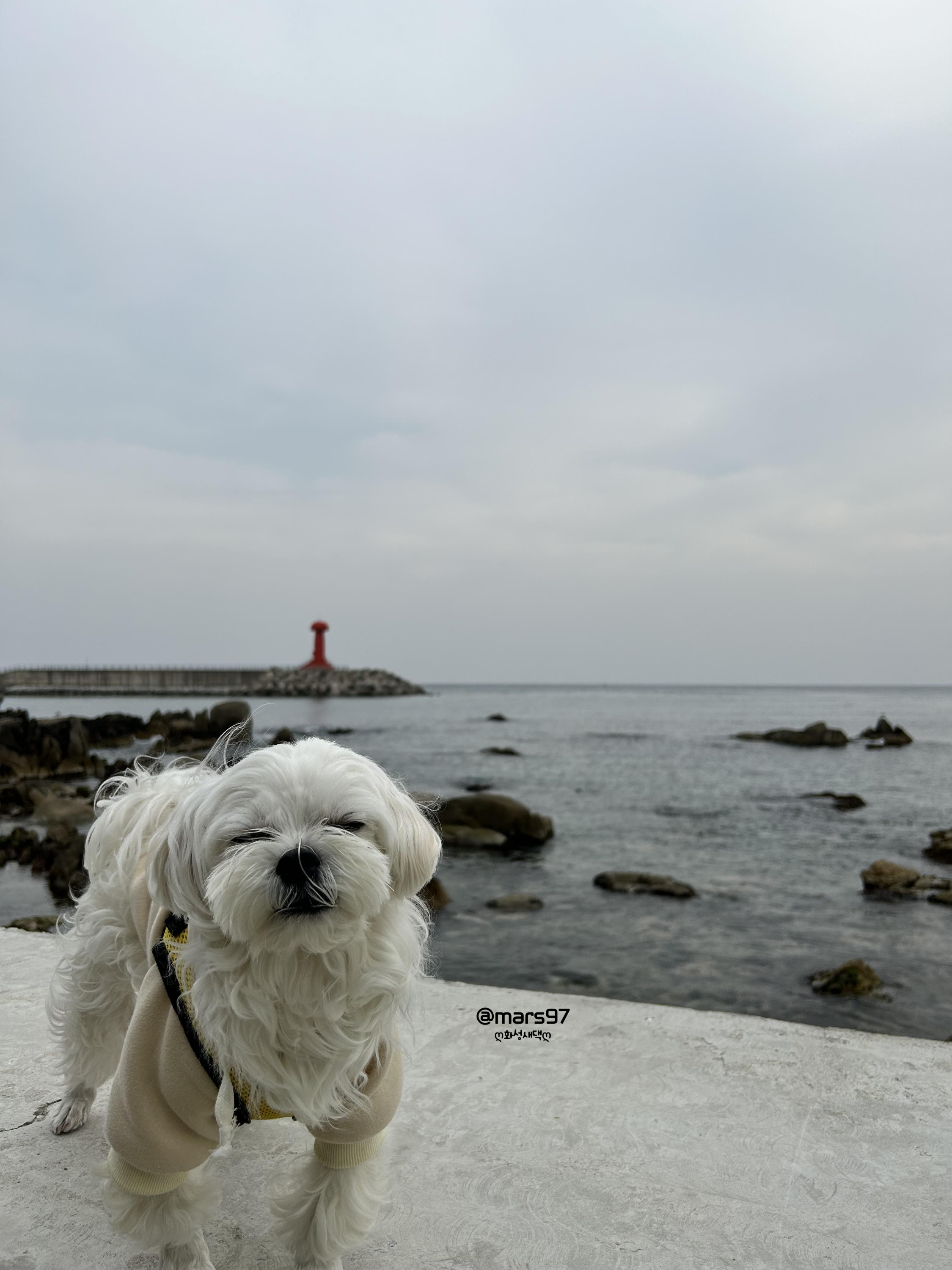 겨울이와 함께 바닷가를 따라 아침 산책을 해했어요
